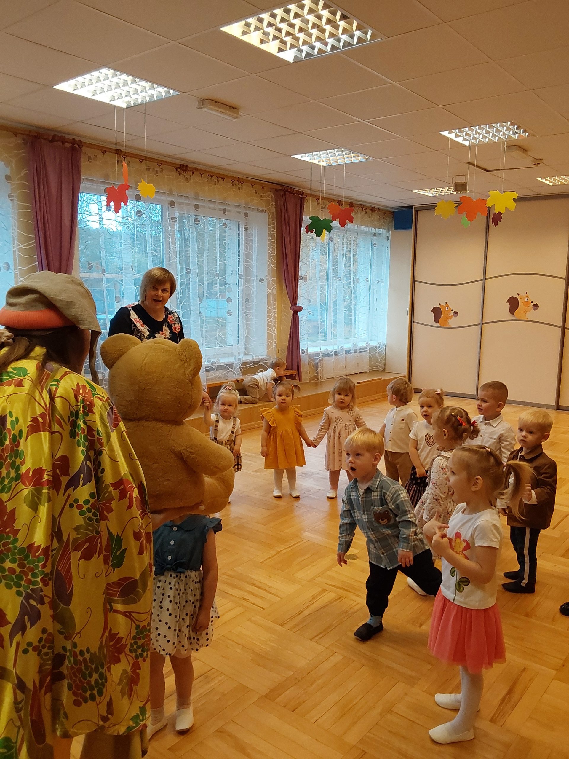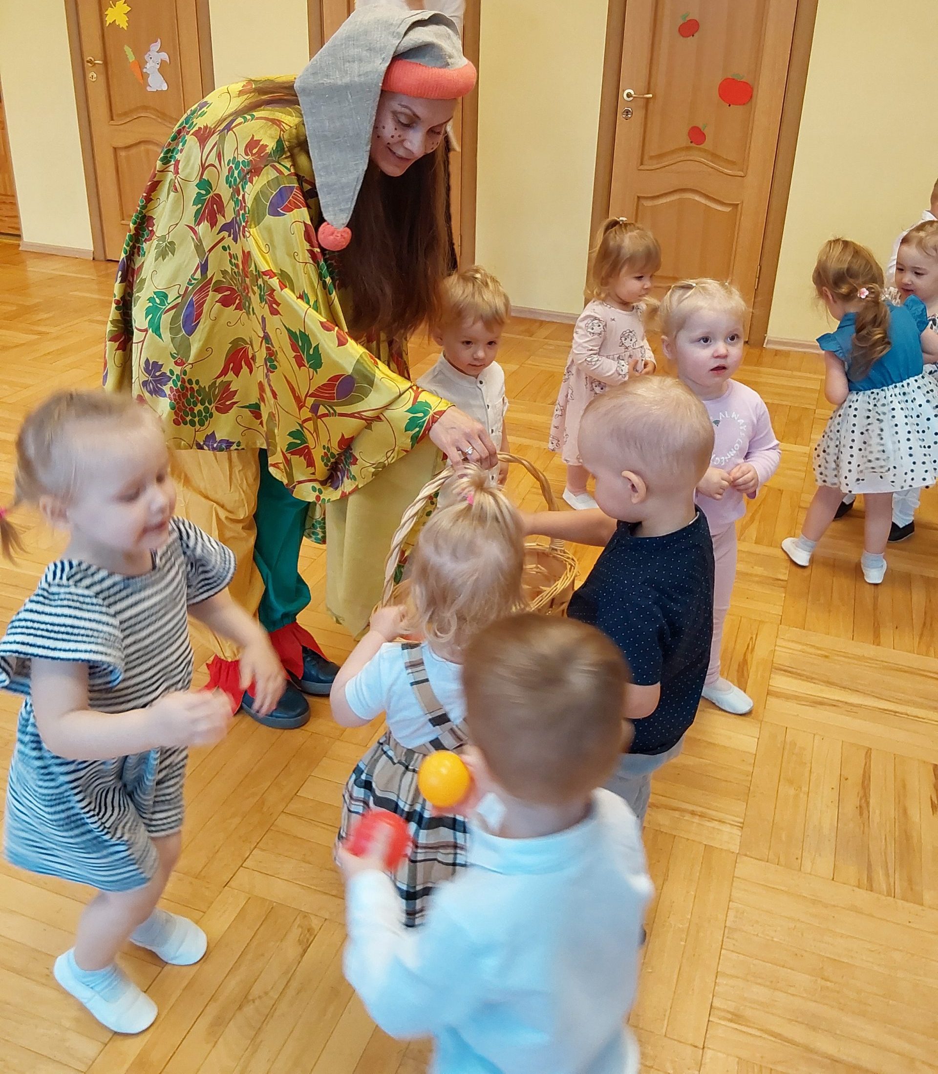 Rūķis ar draugiem- Zaķi, Lāci un Kaķi sarīkoja īstu ballīti! Ballītē visi bērni dziedāja, dejoja ar rudens lapām, smējās, rotaļājās ar “āboliem” un muzicēja ar grabulīšiem.