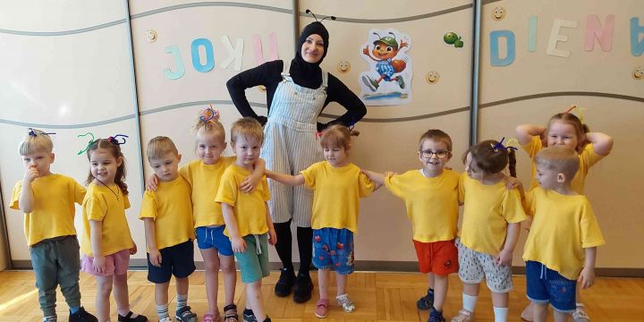 Joku diena- 1.aprīlī! 2026.gada 1.aprīlī PII “Varavīksne” norisinājās jautrs un atraktīvs Joku dienas pasākums, kurā piedalījās četras grupas: “Bitīte”, “Cālēni”, “Saulīte” un “Mārīte”. Bērnus zālē sagaidīja skudra Urda, kura ar rotaļīgu un saistošu ievadu iepazīstināja bērnus ar Joku dienas tradīcijām un neparastajām izpausmēm, piemēram, dīvainu ģērbšanos un jokošanos. Pasākuma sākumā bērni piedalījās iesildīšanās aktivitātē mūzikas pavadībā, kas palīdzēja sagatavoties turpmākajiem uzdevumiem un radīja pozitīvu noskaņojumu. Turpinājumā notika uzmanības uzdevums, kurā bērni tika sadalīti grupās un, reaģējot uz dažādām ciparu kartītēm, veica noteiktas kustības. Lielu sajūsmu izraisīja stafetes ar maisiem, kur bērni darbojās pāros, kopīgi veicot distanci līdz konusam un atpakaļ. Šis uzdevums veicināja sadarbību, koordināciju un savstarpējo atbalstu. Pasākuma noslēgumā bērni piedalījās jautrā “Joku diskotēkā”, kur dejas mijās ar dzīvnieku skaņu atpazīšanu un attēlošanu kustībās. Šī aktivitāte radīja daudz smieklu…