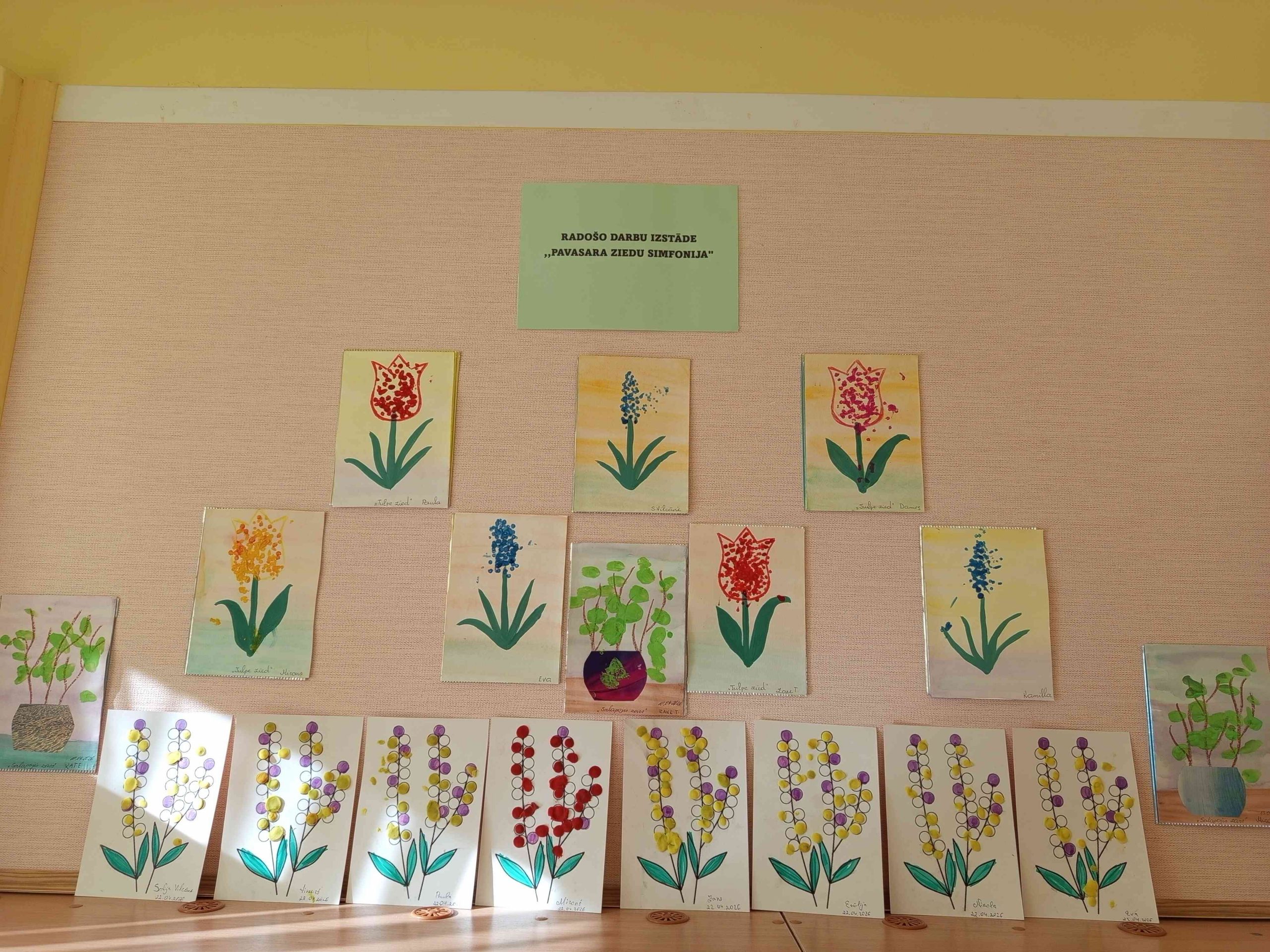 No 27.04.2026. iestādē var apskatīt mūsu iestādes bērnu zīmējumu/kolāžu izstādi “Pavasara ziedu simfonija!”