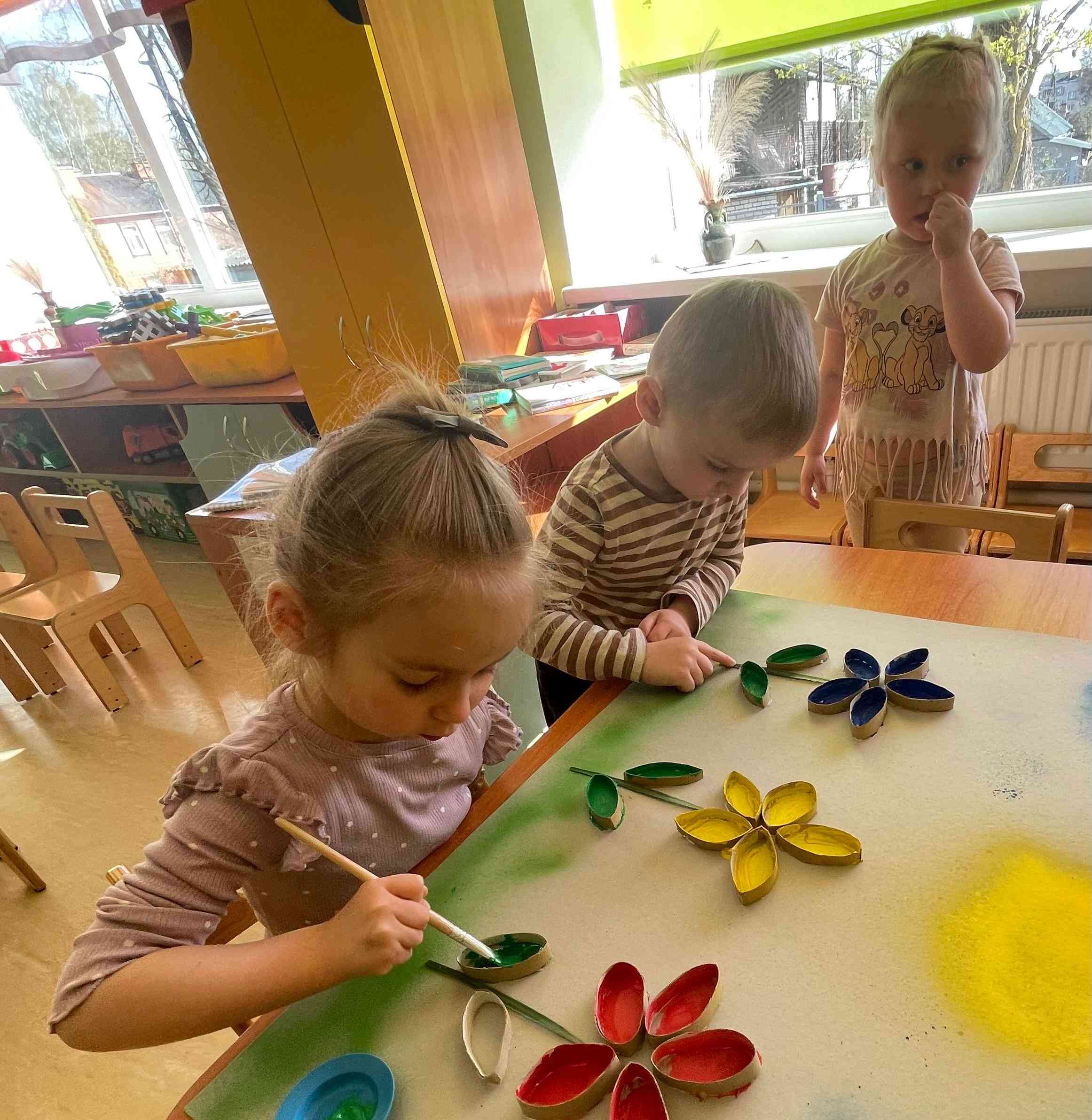 No 27. aprīļa pirmsskolas izglītības iestādē “Varavīksne” notika “Pavasaru ziedu simfonijas” izstāde. Grupas “Cālēni” bērni ar lielu prieku un aizrautību zīmēja, aplicēja, veidoja no plastilīna un krāsainām stieplēm dažādas puķes izstādei. Katrs izvēlējās savas mīļākās krāsas un veidoja košus, radošus darbus – no sniegpulkstenītēm līdz krāšņām tulpēm un fantāzijas ziediem. Darba procesā bērni ne tikai attīstīja iztēli, rūpību un krāsu izjūtu, bet arī mācījās sadarboties, dalīties ar materiāliem un iedvesmot viens otru.