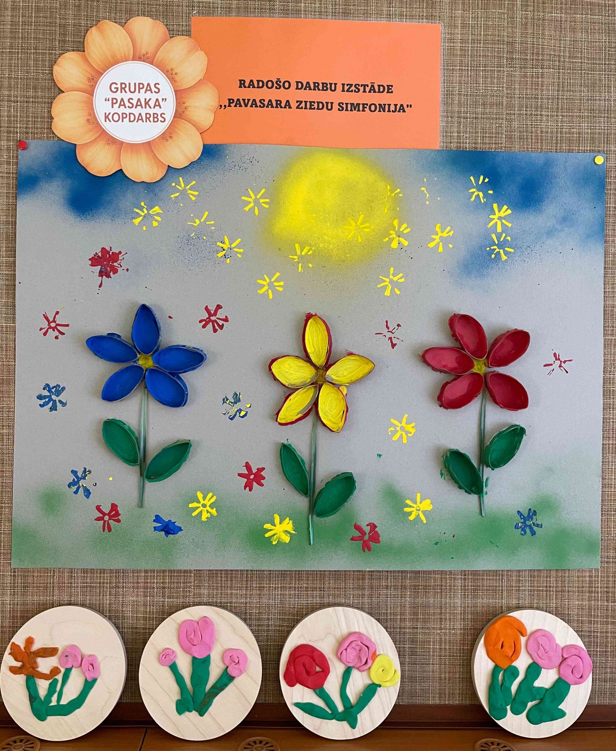 Grupas “Pasaka” audzēkņi ar prieku piedalījās radošo darbu izstādē “Pavasara ziedu simfonija”. Darbos bērni attēloja pavasara krāsainību un dabas atmošanos, izmantojot dažādas tehnikas – krāsošanu un veidošanu. Košie ziedi, saulīte un rotaļīgie raksti atspoguļo bērnu iztēli, radošumu un prieku par pavasari. Izstāde priecē ar sirsnīgu un krāsainu skatījumu uz dabas skaistumu.
