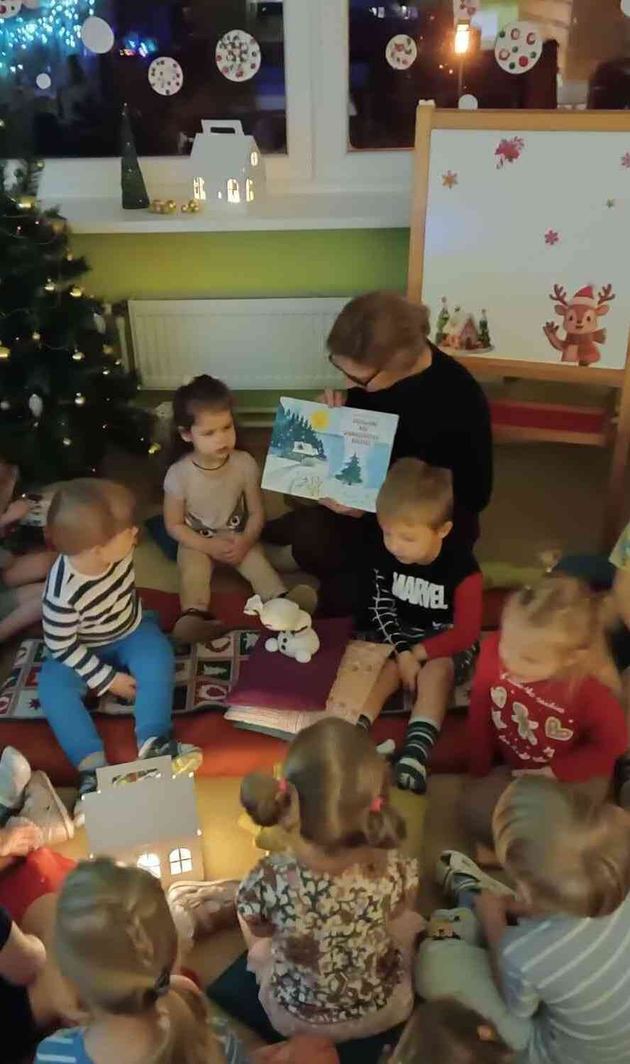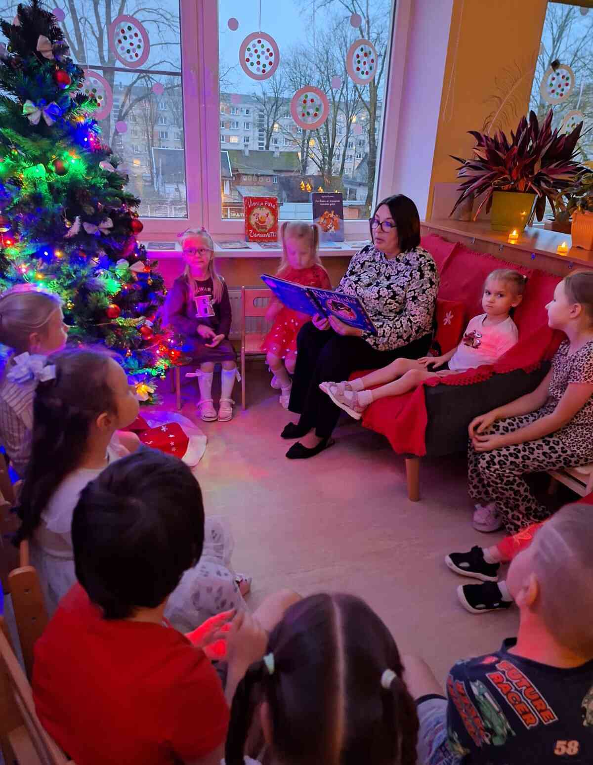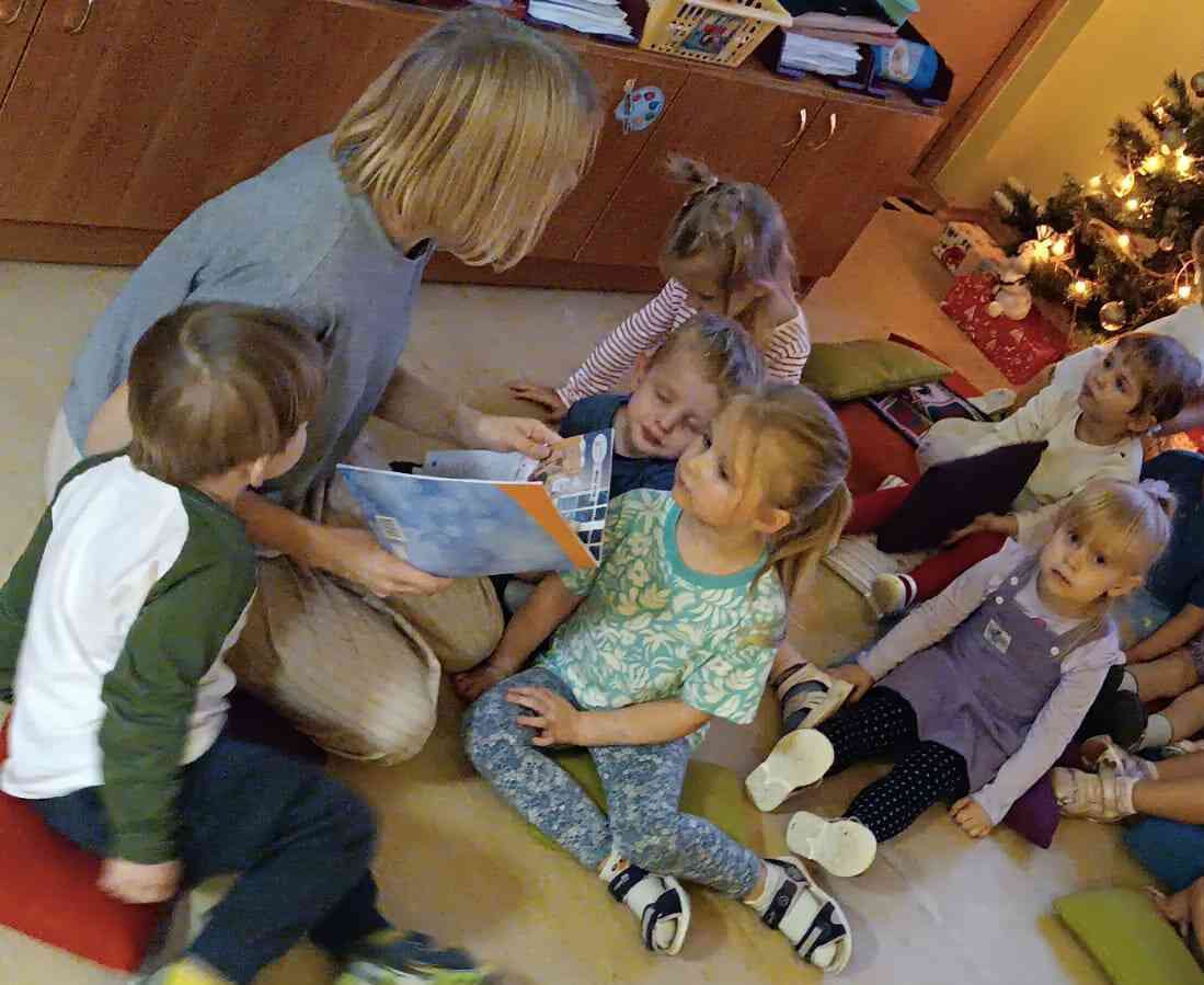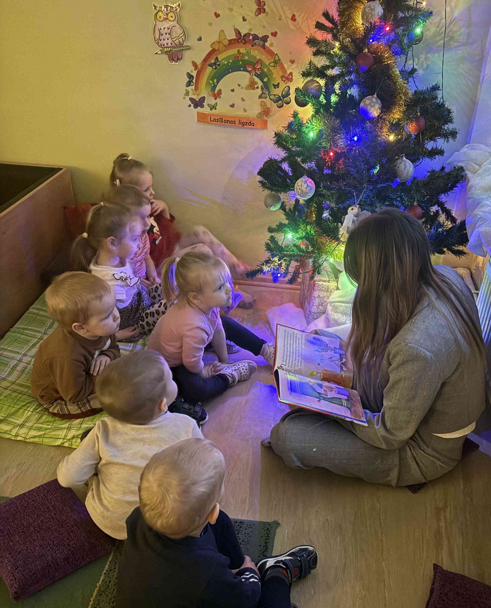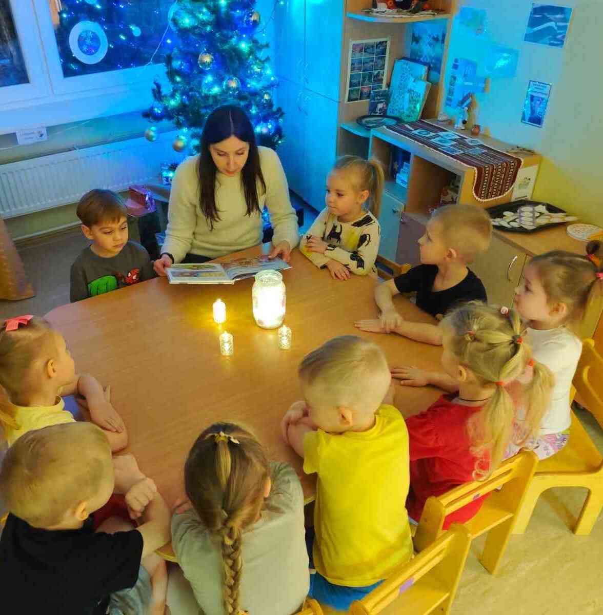 Pasaku lasīšana sveču gaismā ir mierpilns un aizraujošs piedzīvojums, kas rosina iztēli un klausīšanās prieku. Klausoties pasakas, bērni attīsta valodu, uzmanību un emociju izpratni, vienlaikus baudot īpašu, sirsnīgu kopā būšanas brīdi. Maigā, siltā sveču gaisma rada mājīgu noskaņu un iespēju labāk iejusties pasaku pasaulē. Bērni no grupas “Mārīte” klausījās M. Stārastes “Ziemas pasaka”, par ziņkārīgo piparkūku vīriņu Kraukšķīti, kurš devās iepriecināt bērnus Ziemassvētku vakarā; „Vinnija Pūka Ziemassvētki”- Vinnijs Pūks, Sivēns un Ēzelītis ir satraukti, jo tuvojas Ziemassvētki. Viņiem nāk palīgā gudrā Pūce. Ernsta Teodora Amadeja Hofmaņa pasaka “Riekstkodis” – par drošsirdīgo Riekstkodi un ļauno Peļu ķēniņu.