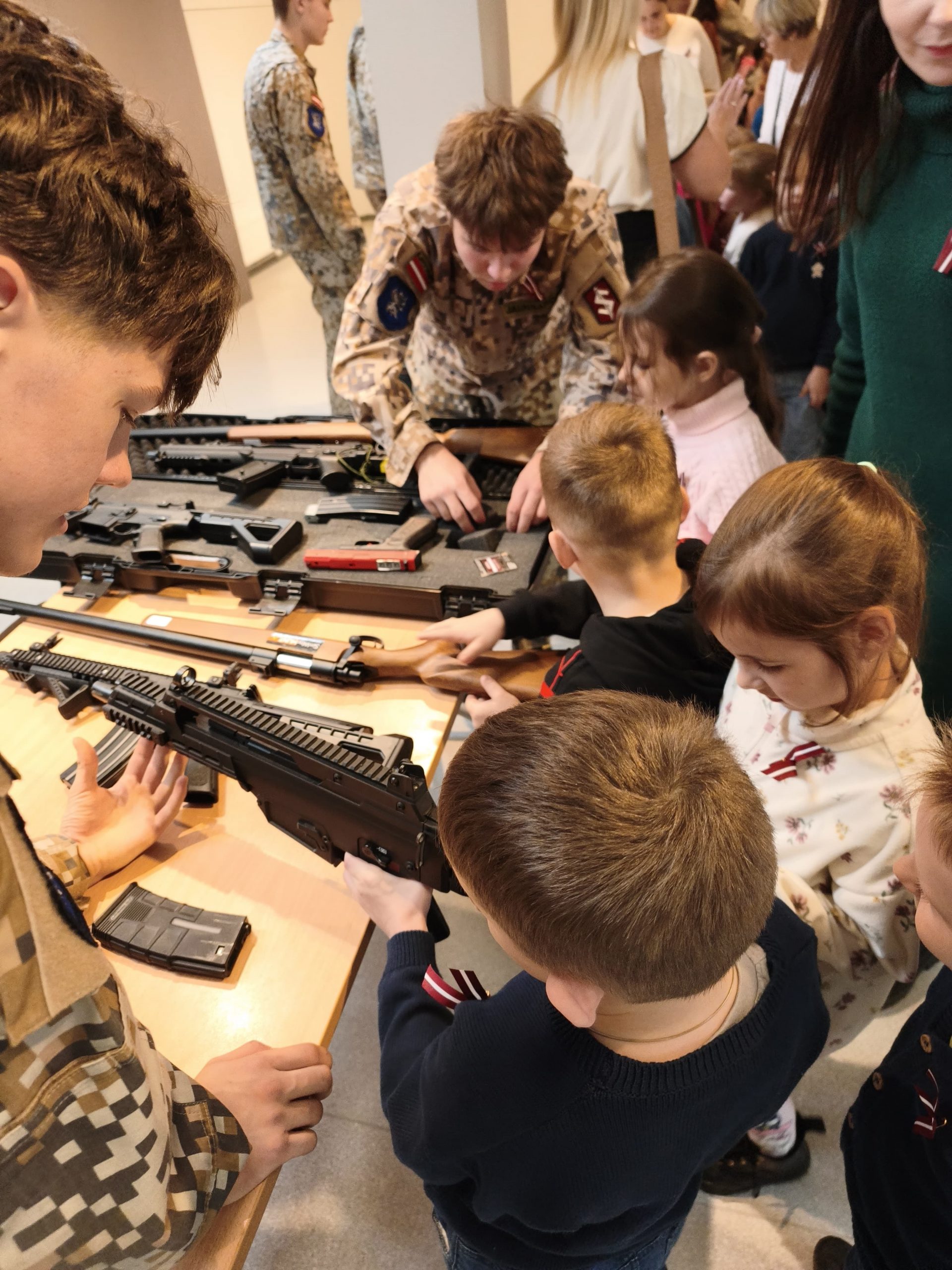 Lāčplēša dienā vecāko grupu “Bitīte” un “Mārīte” bērni devās mācību ekskursijā uz Latgales Kultūrvēstures muzeju, kur notika tradicionālā sarkanbaltsarkano lentīšu locīšana un izglītojošas aktivitātes sadarbībā ar Zemessardzi un jaunsargiem, lai ikviens būtu gatavs svinēt gaidāmos Latvijas valsts svētkus!