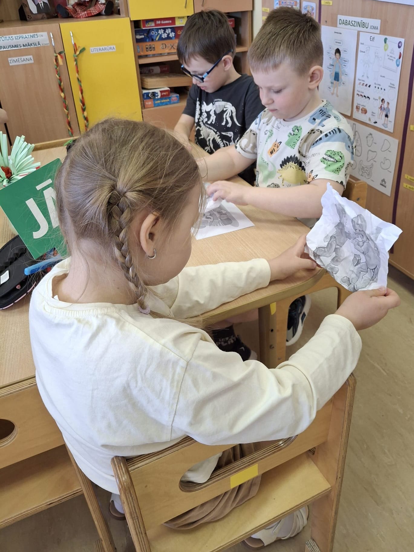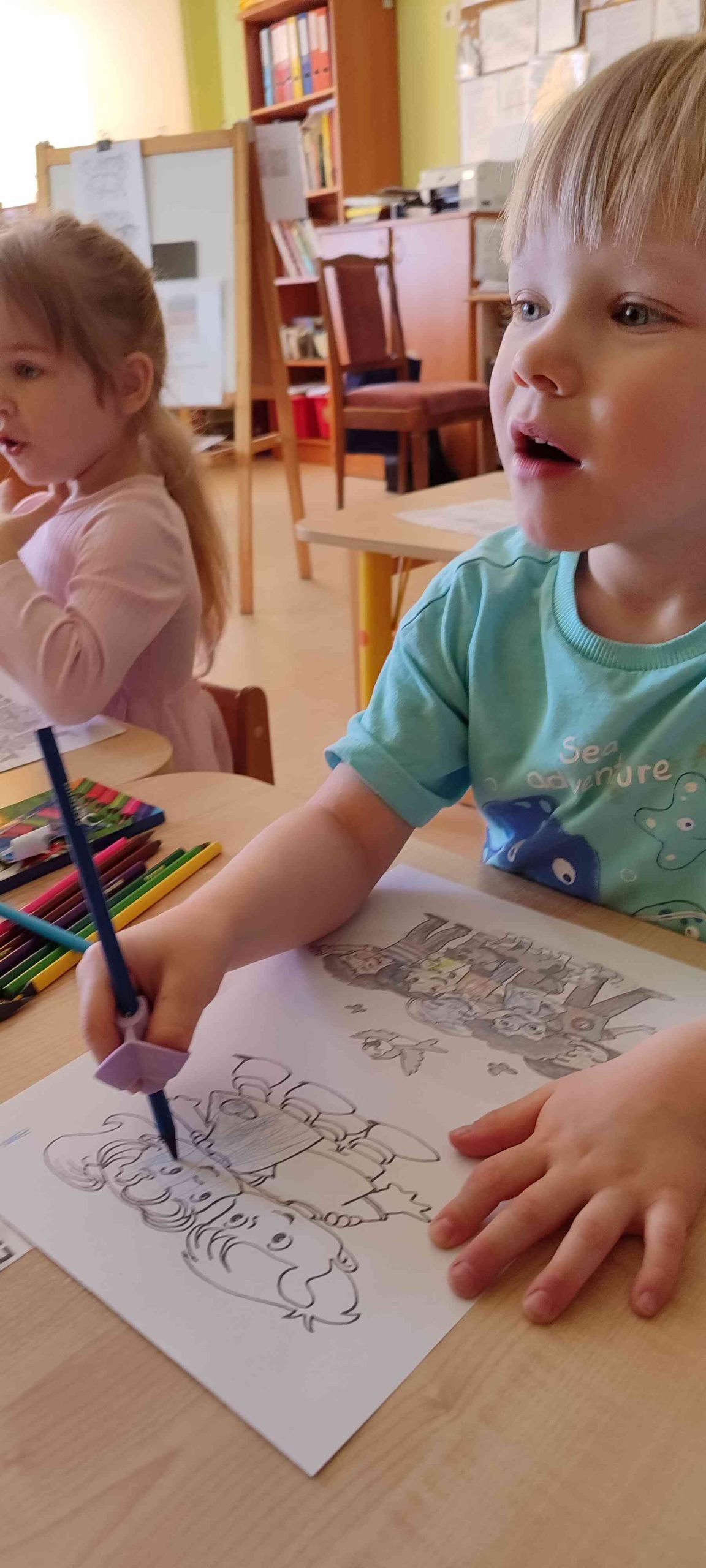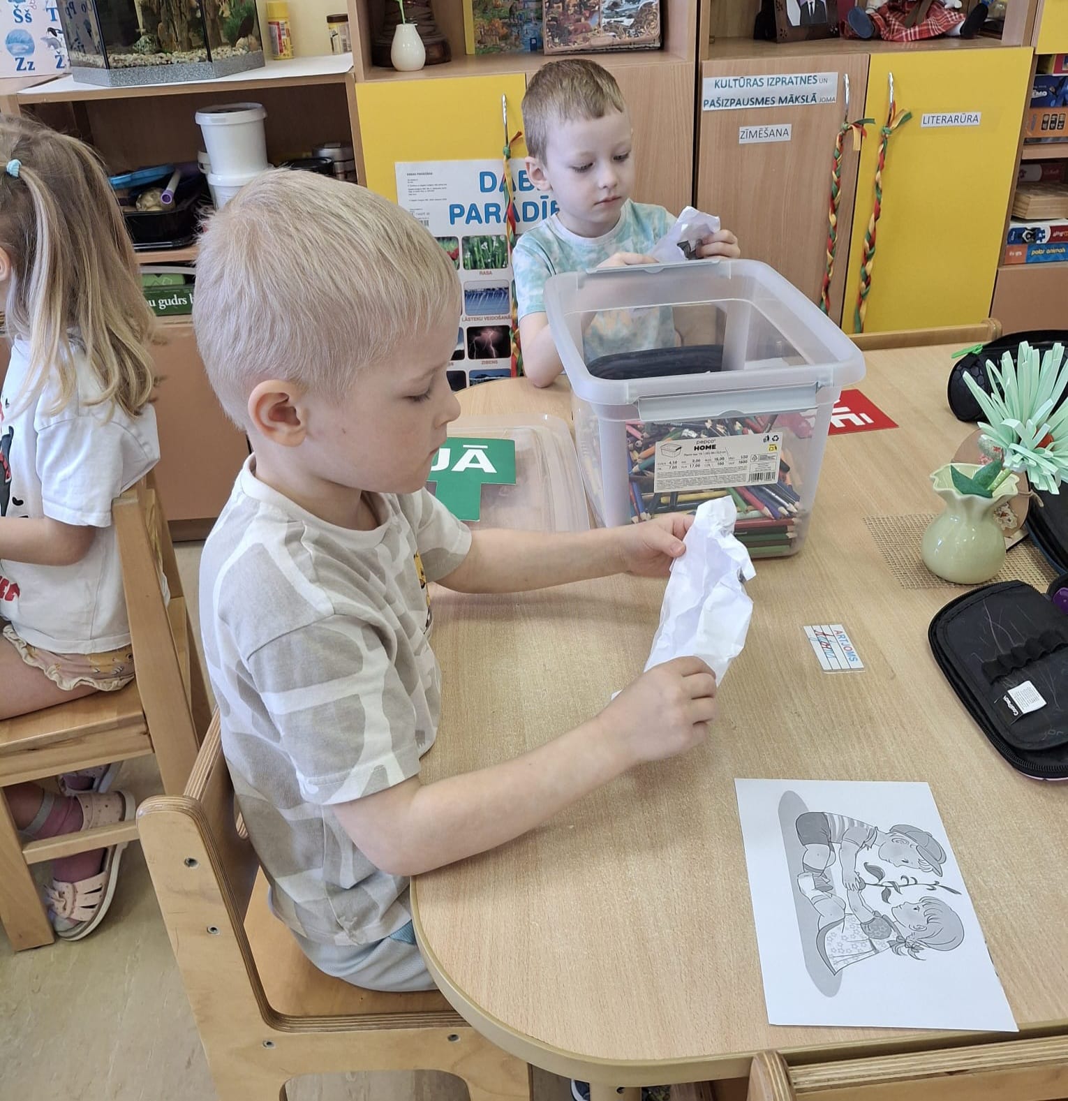 Noslēgumā bērni krāsoja darba lapas ar pareizu rīcību un aizsvītroja vardarbīgas uzvedības modeļus.