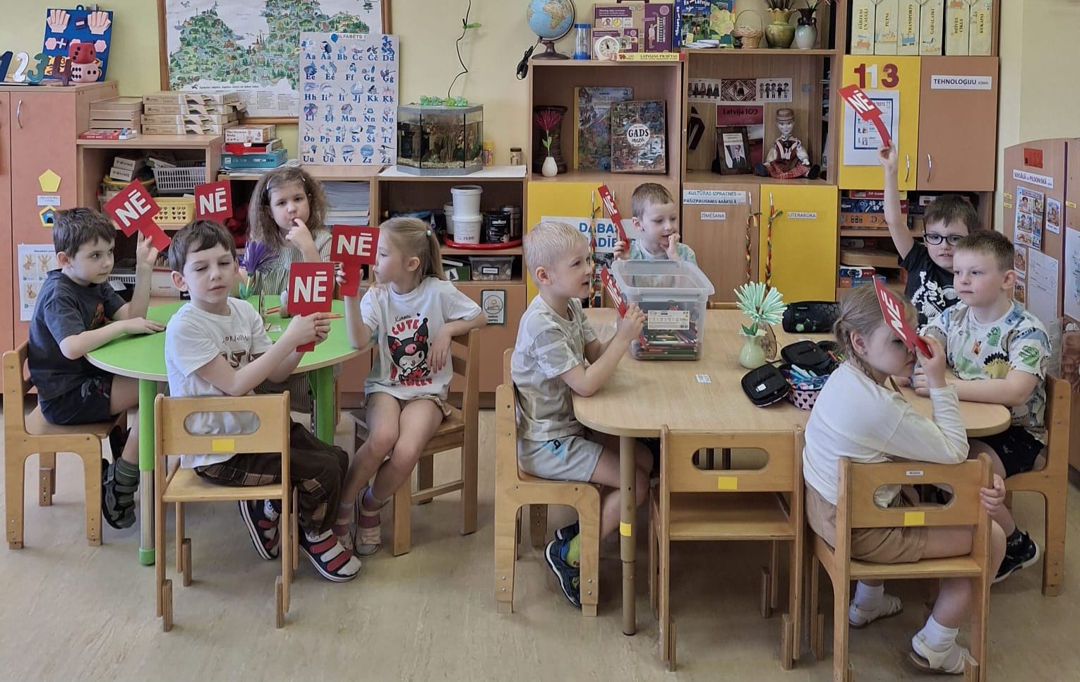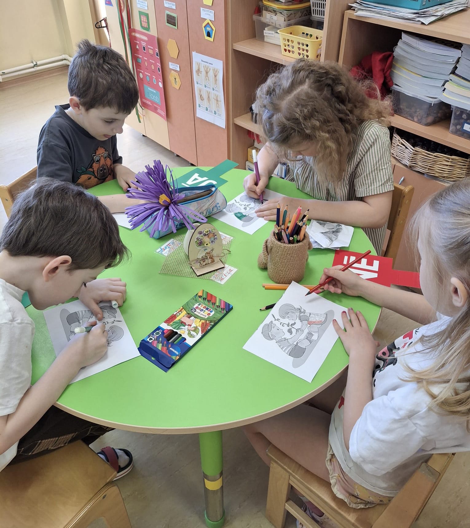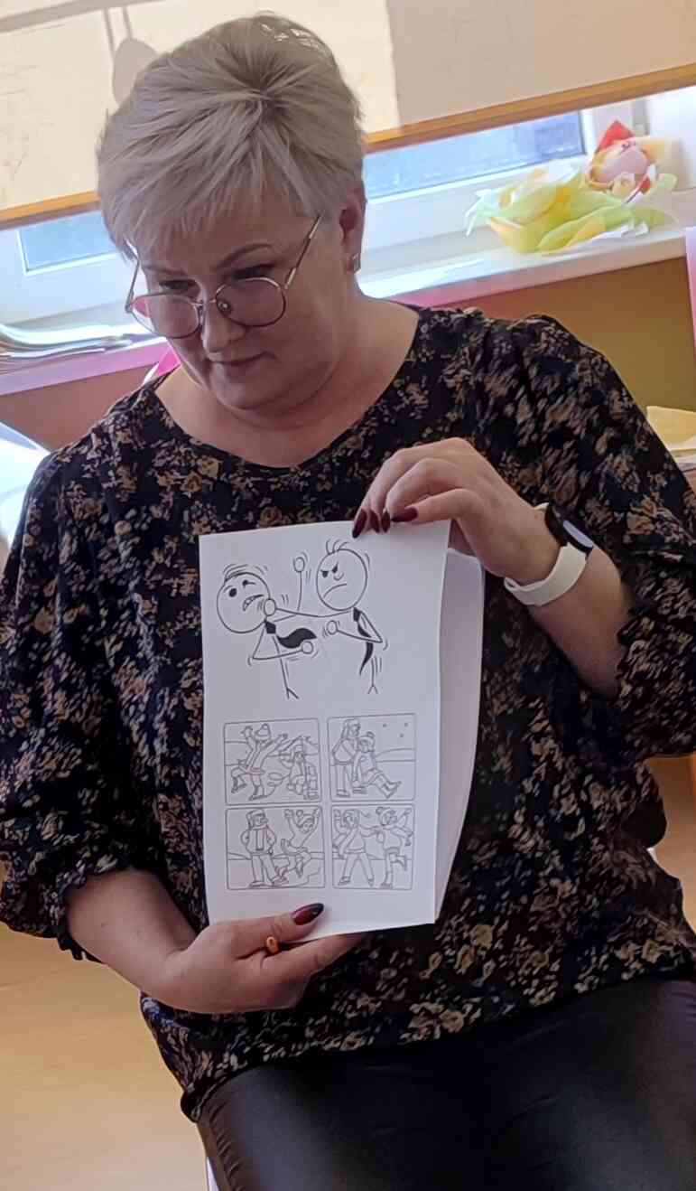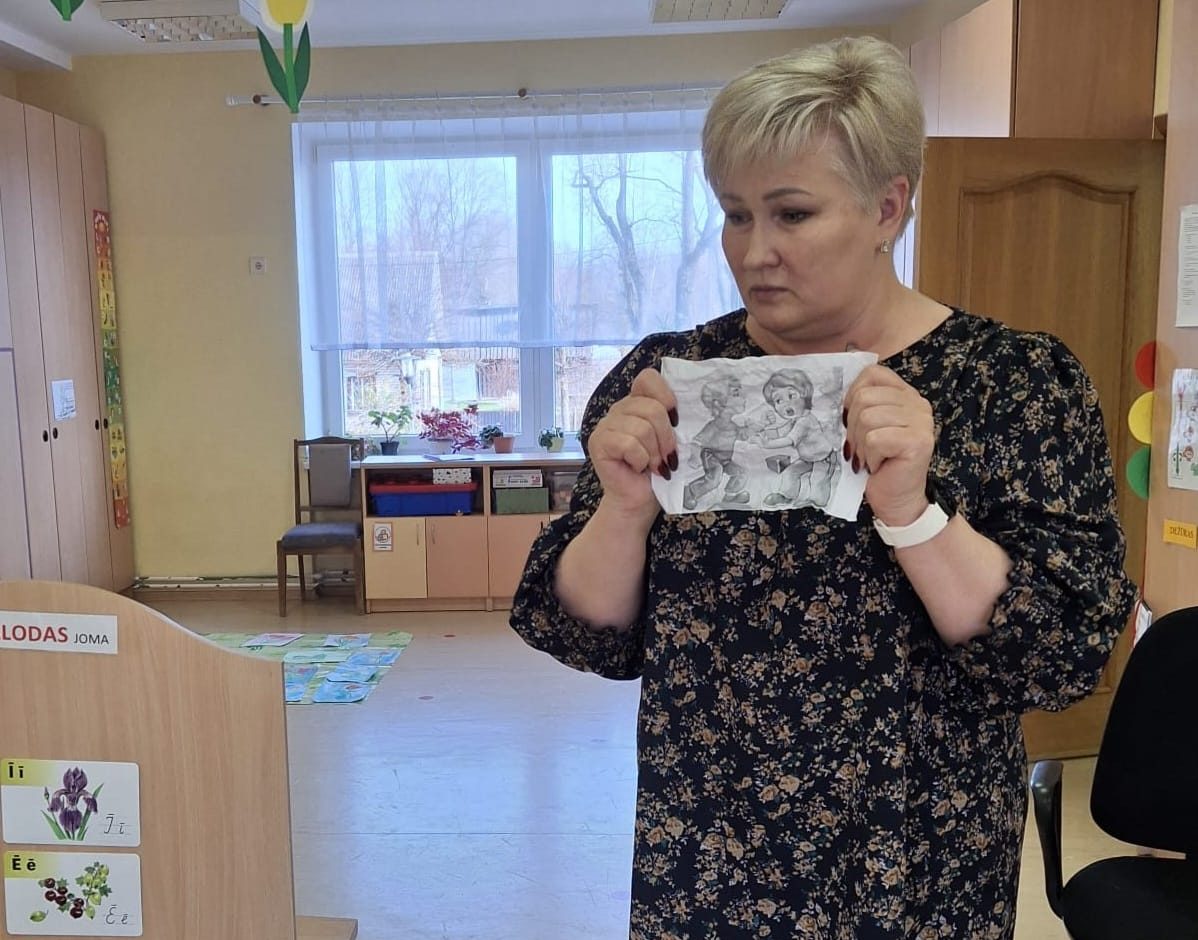 Noslēgumā bērni krāsoja darba lapas ar pareizu rīcību un aizsvītroja vardarbīgas uzvedības modeļus.