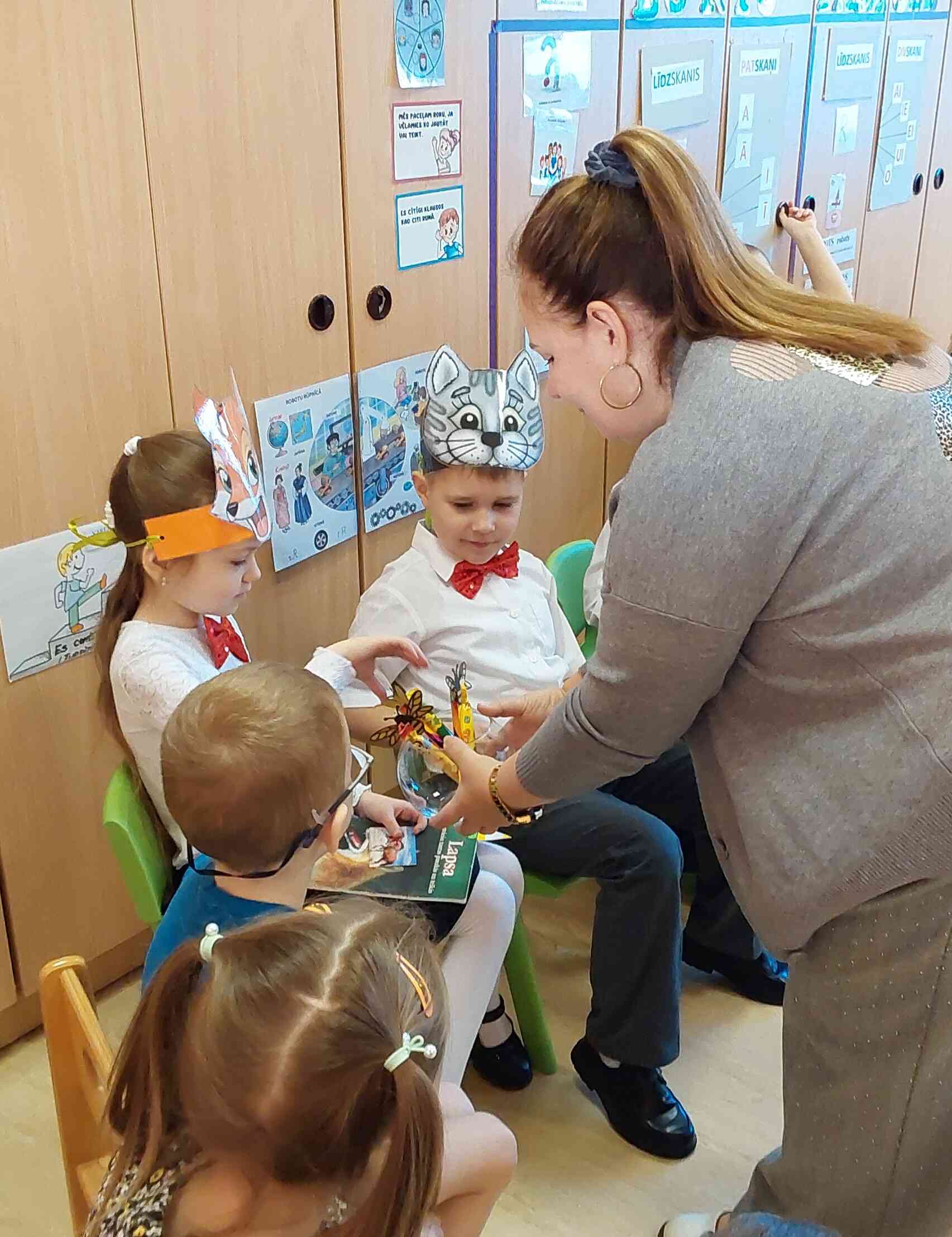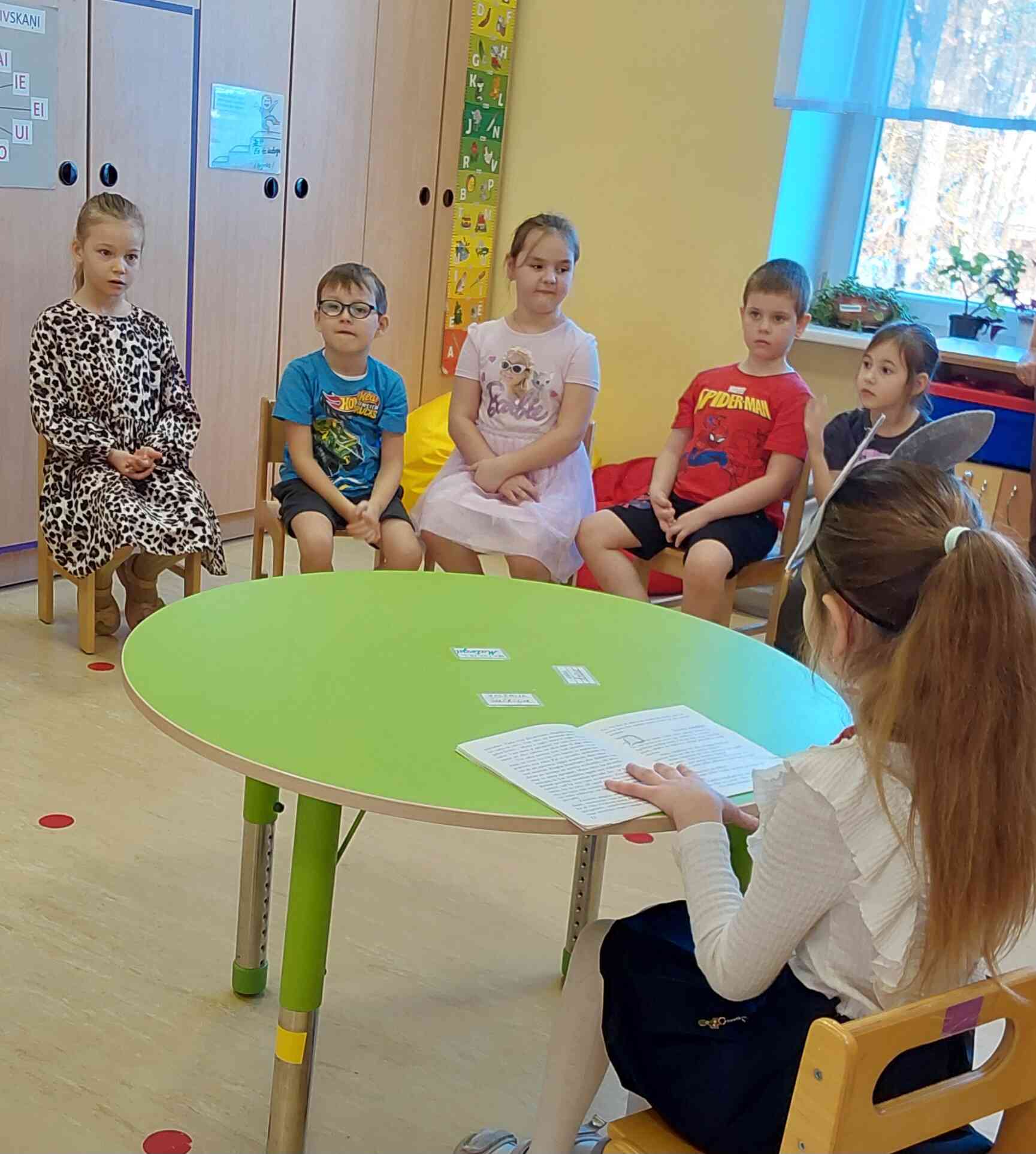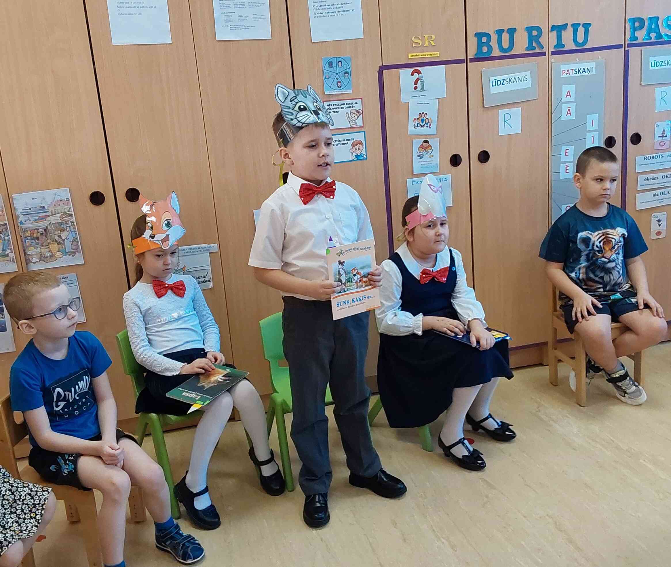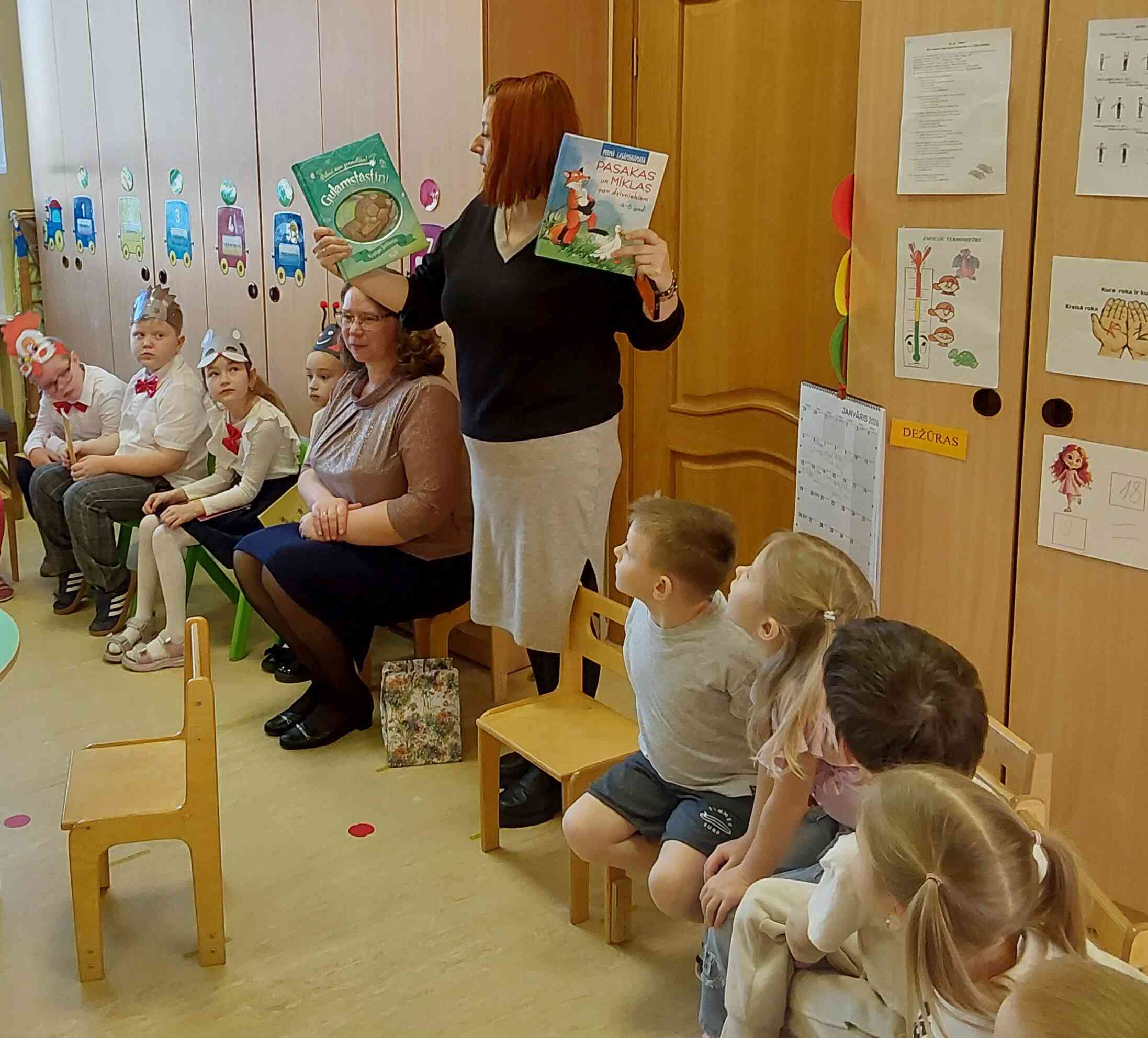 Skolēni atnesa bērnu grāmatas ar stāstiem un pasakām, no kurām lielie bērni lasīja priekšā pirmsskolas bērniem, tādā veidā kopīgi pilnveidojot lasītprasmi un klausīšanās prasmi.