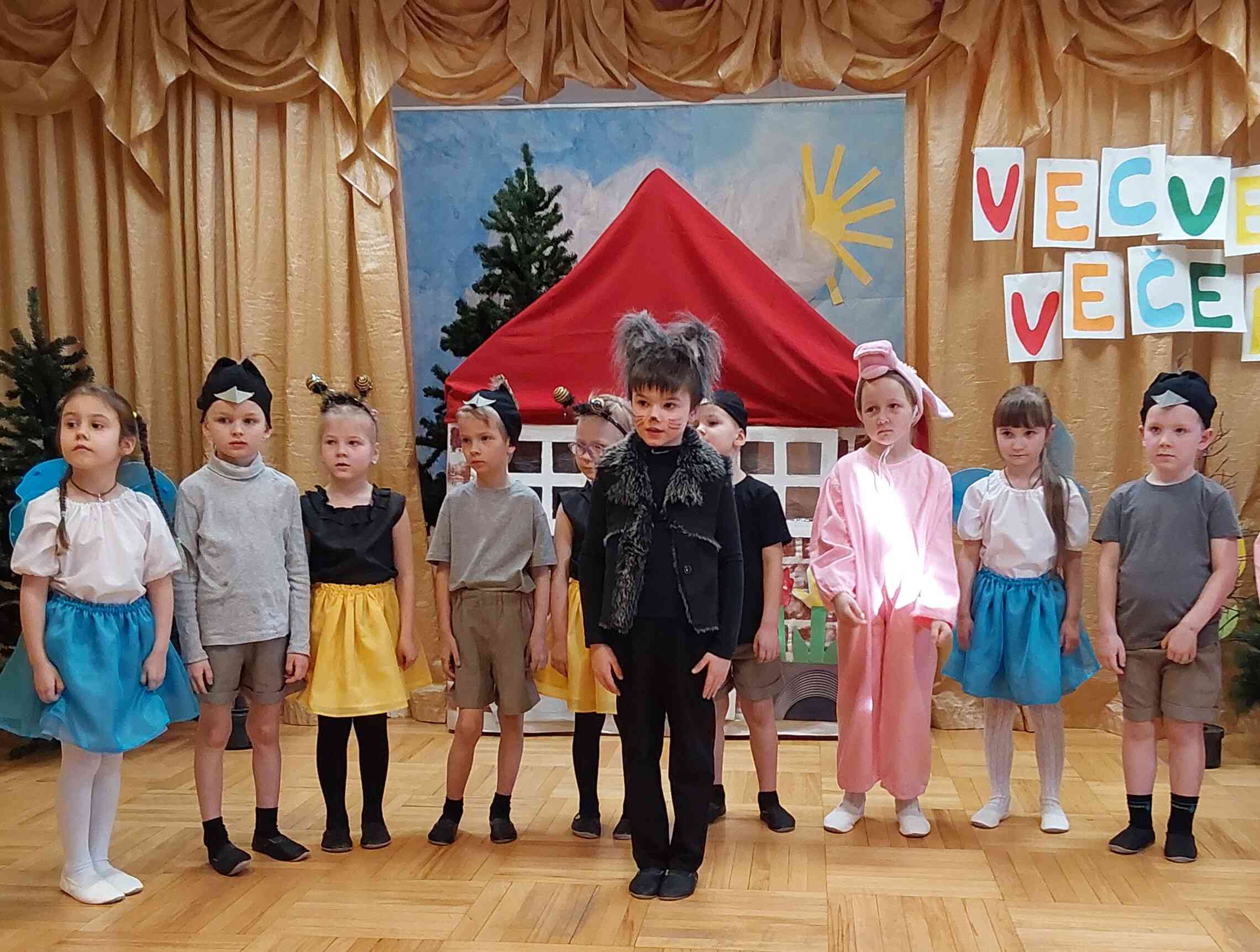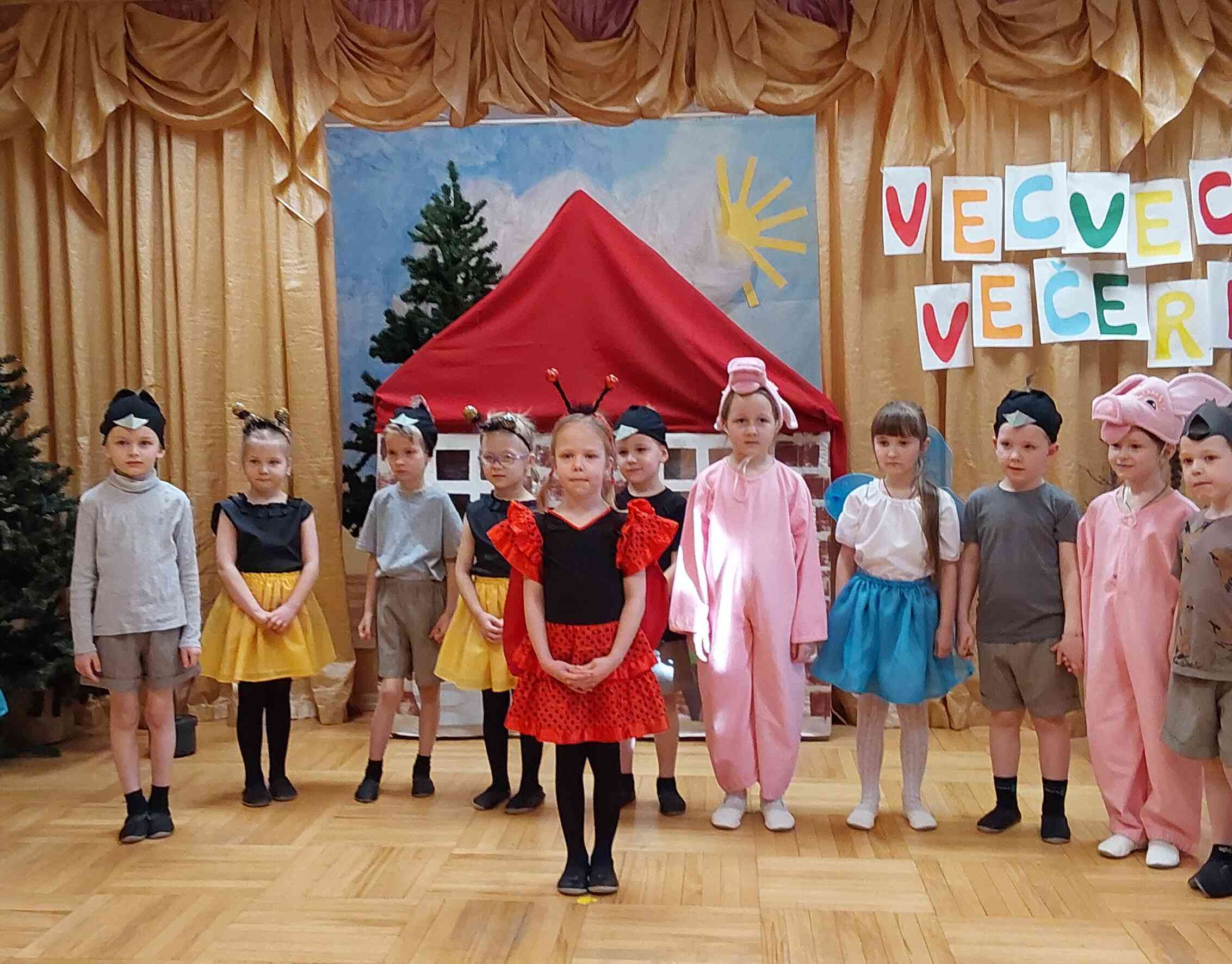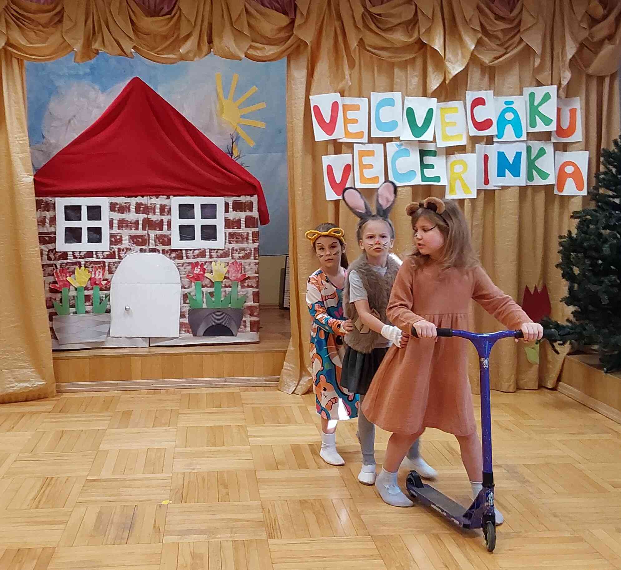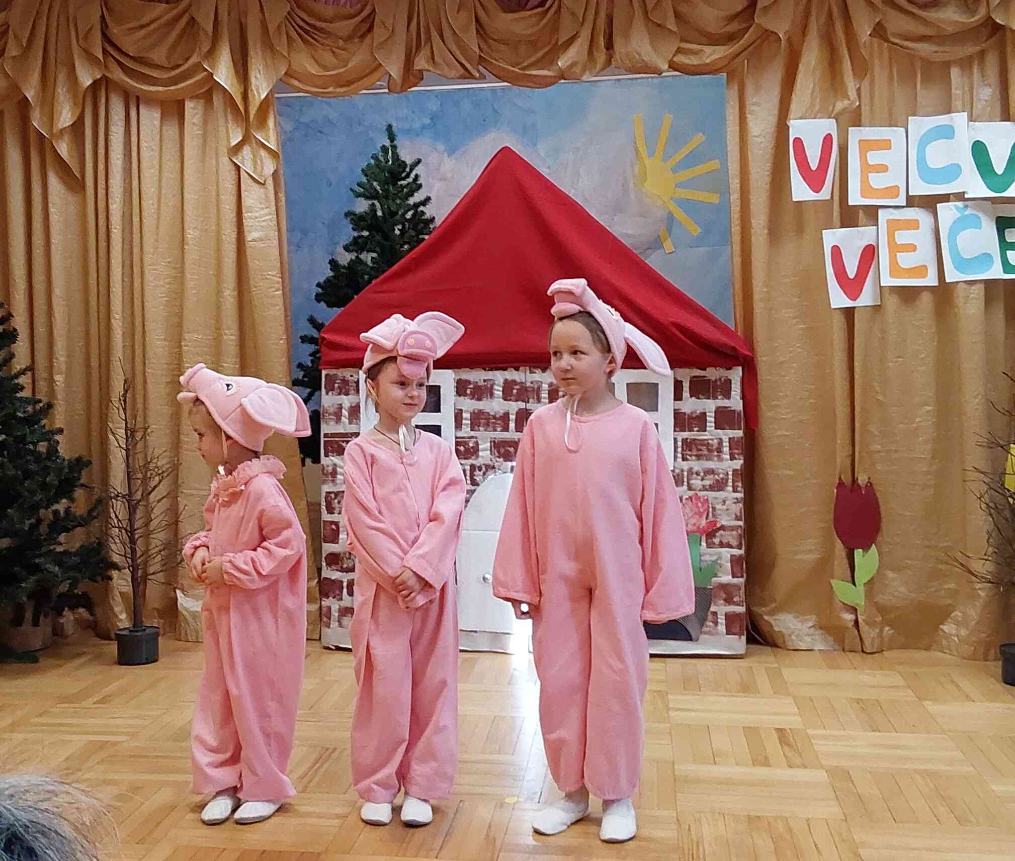 Bērni no grupas “Mārīte” bija sarūpējuši teatrālu uzvedumu pēc Brāļu Grimmas pasakas ”Trīs sivēntiņi “ motīviem.