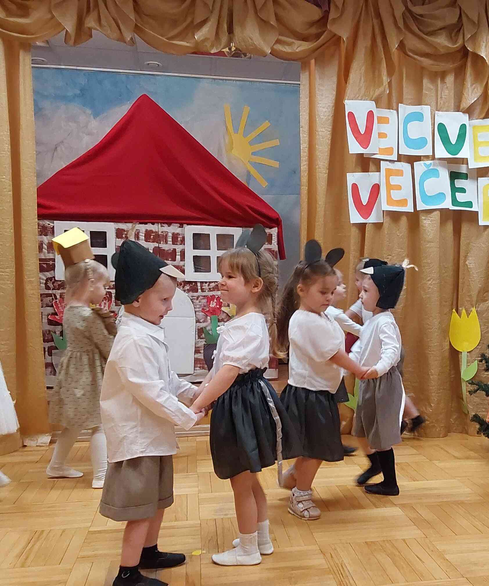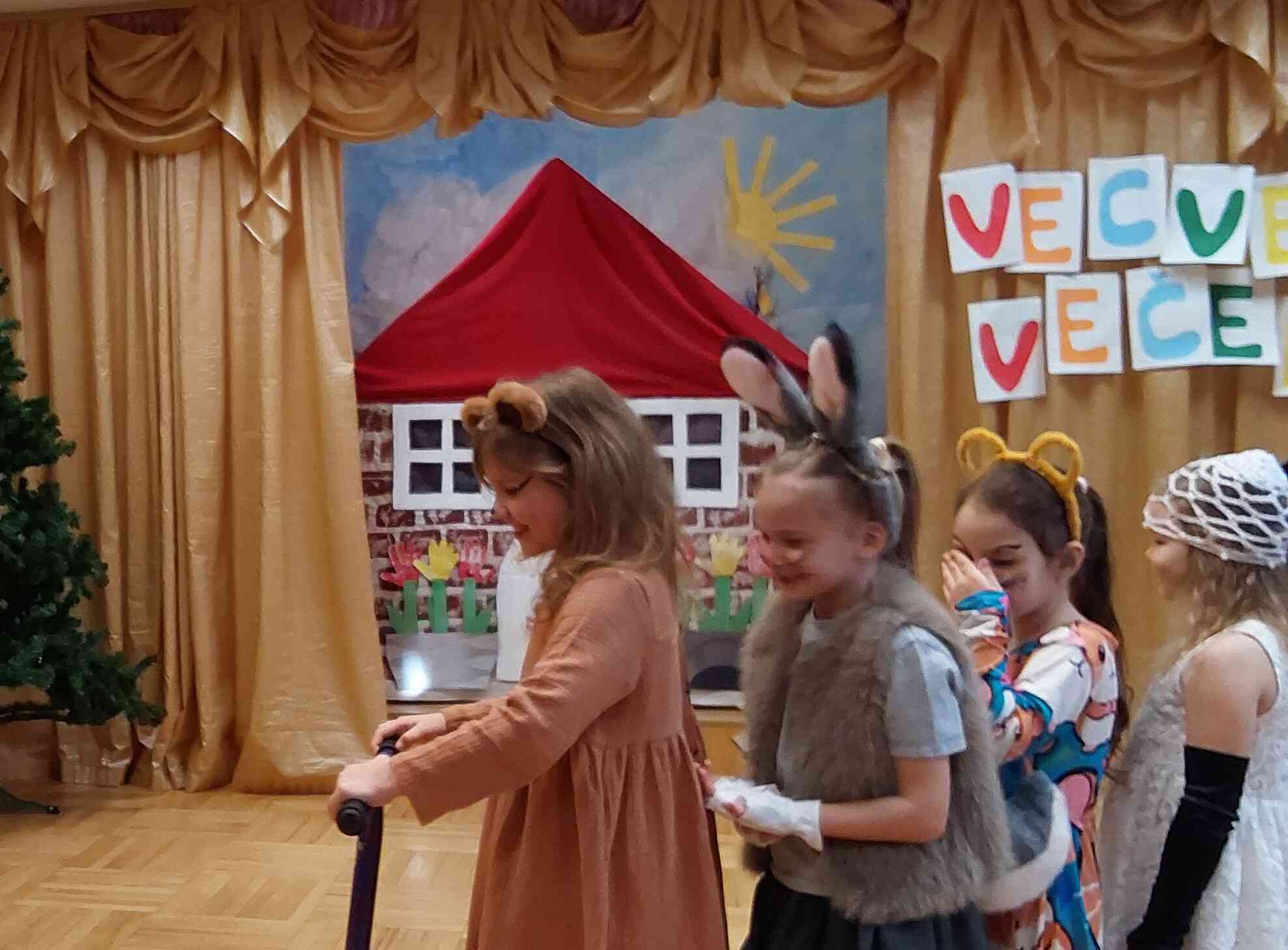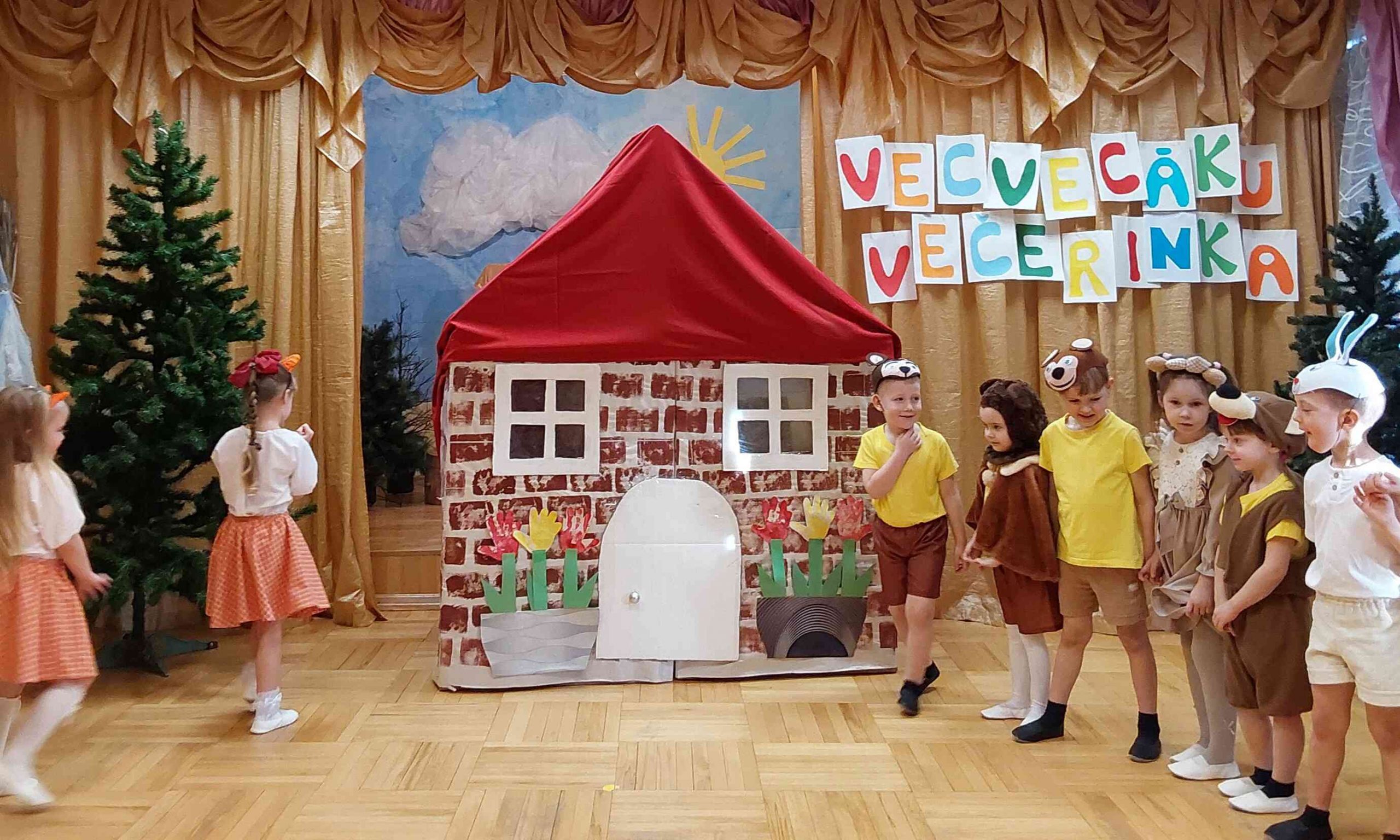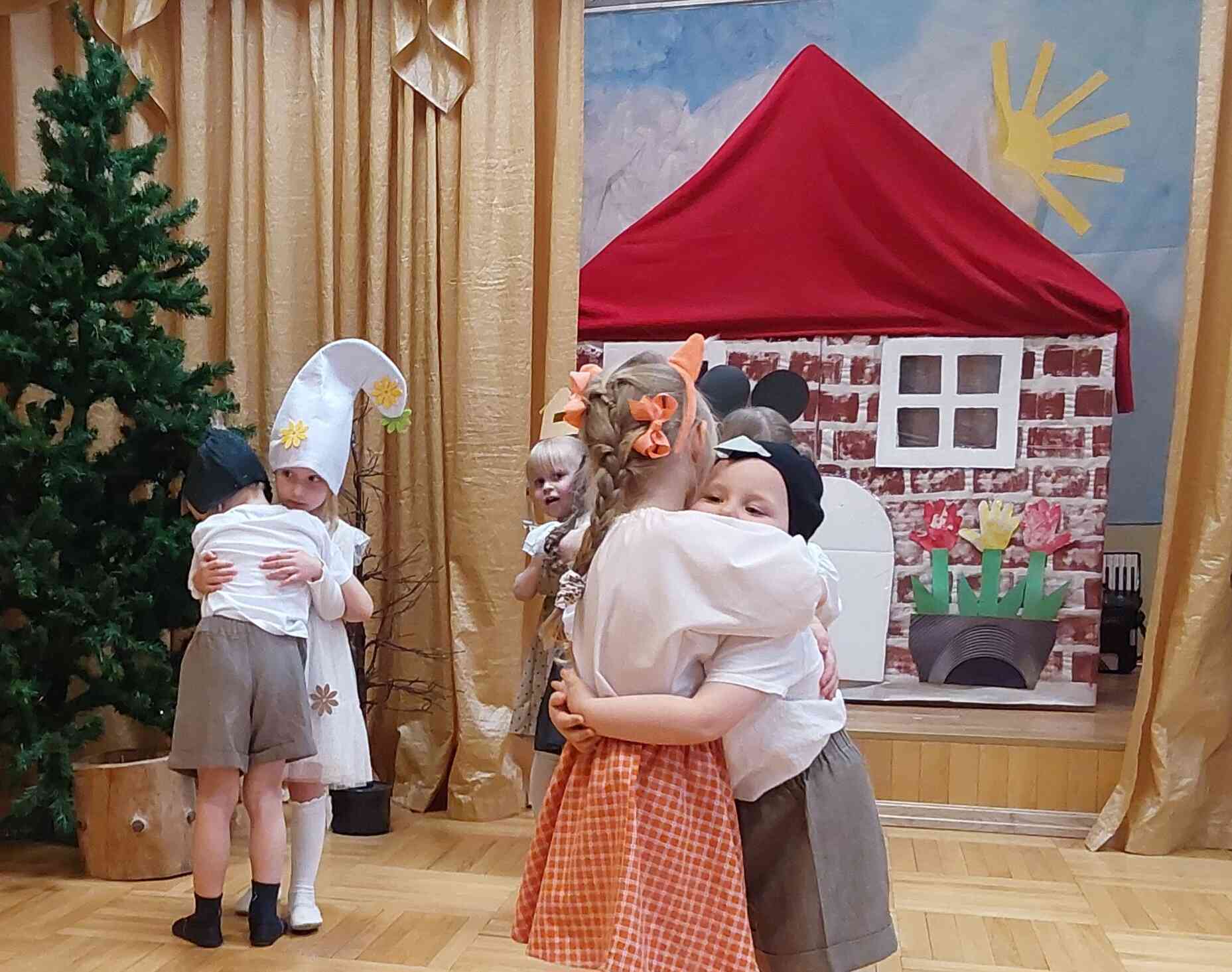 Bērni no grupas “Mārīte” bija sarūpējuši teatrālu uzvedumu pēc Brāļu Grimmas pasakas ”Trīs sivēntiņi “ motīviem.