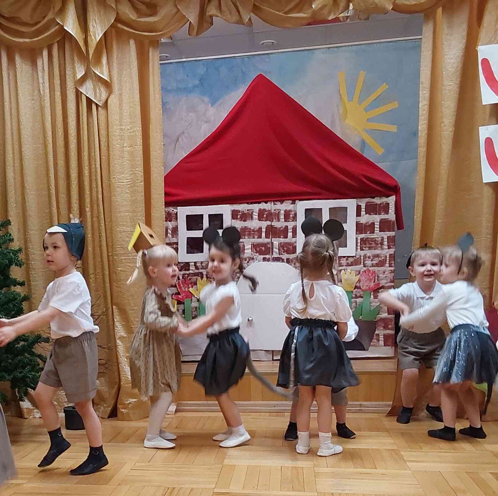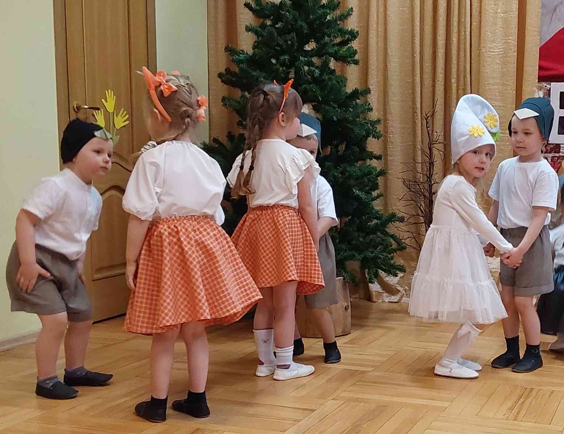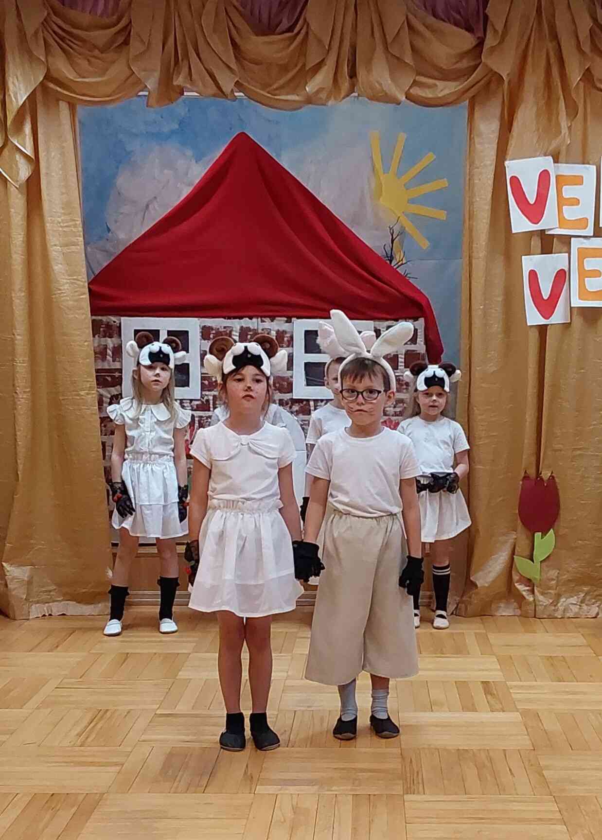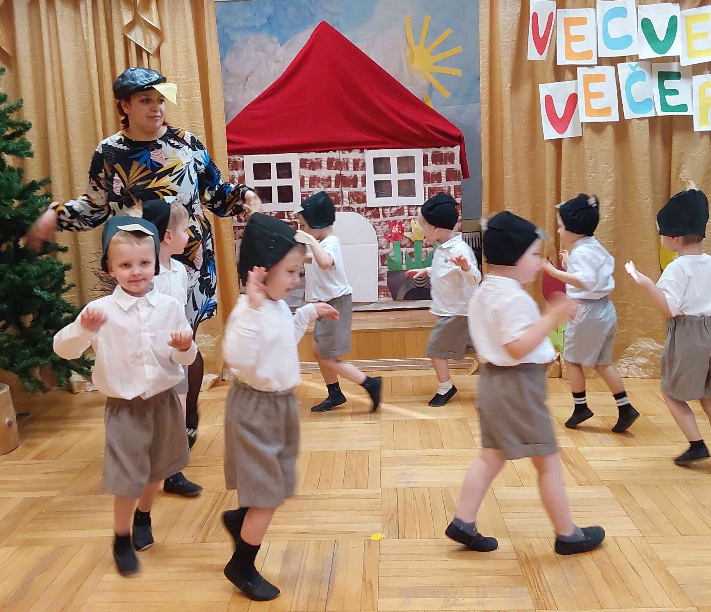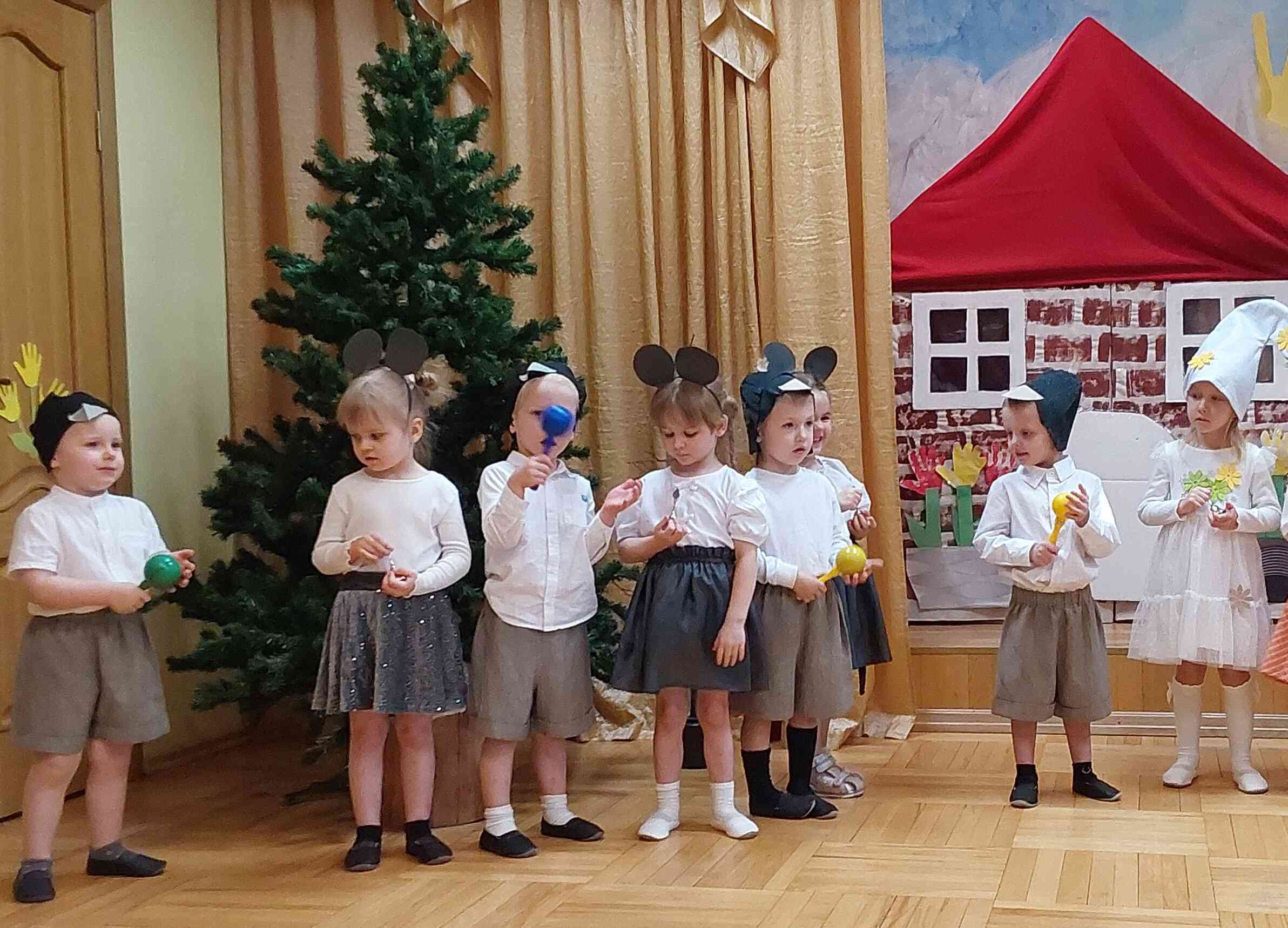 Bērni no grupas “Mārīte” bija sarūpējuši teatrālu uzvedumu pēc Brāļu Grimmas pasakas ”Trīs sivēntiņi “ motīviem.