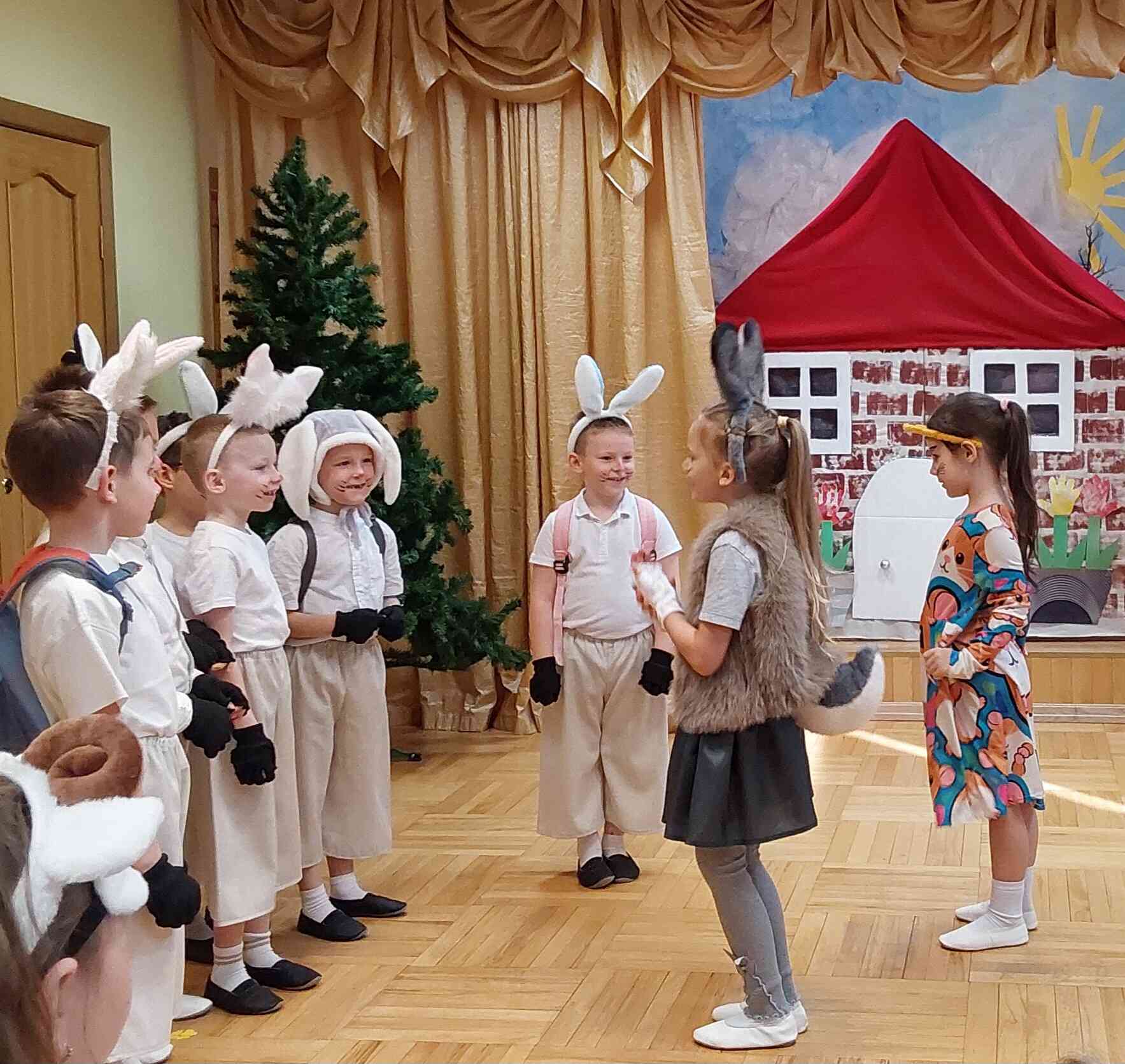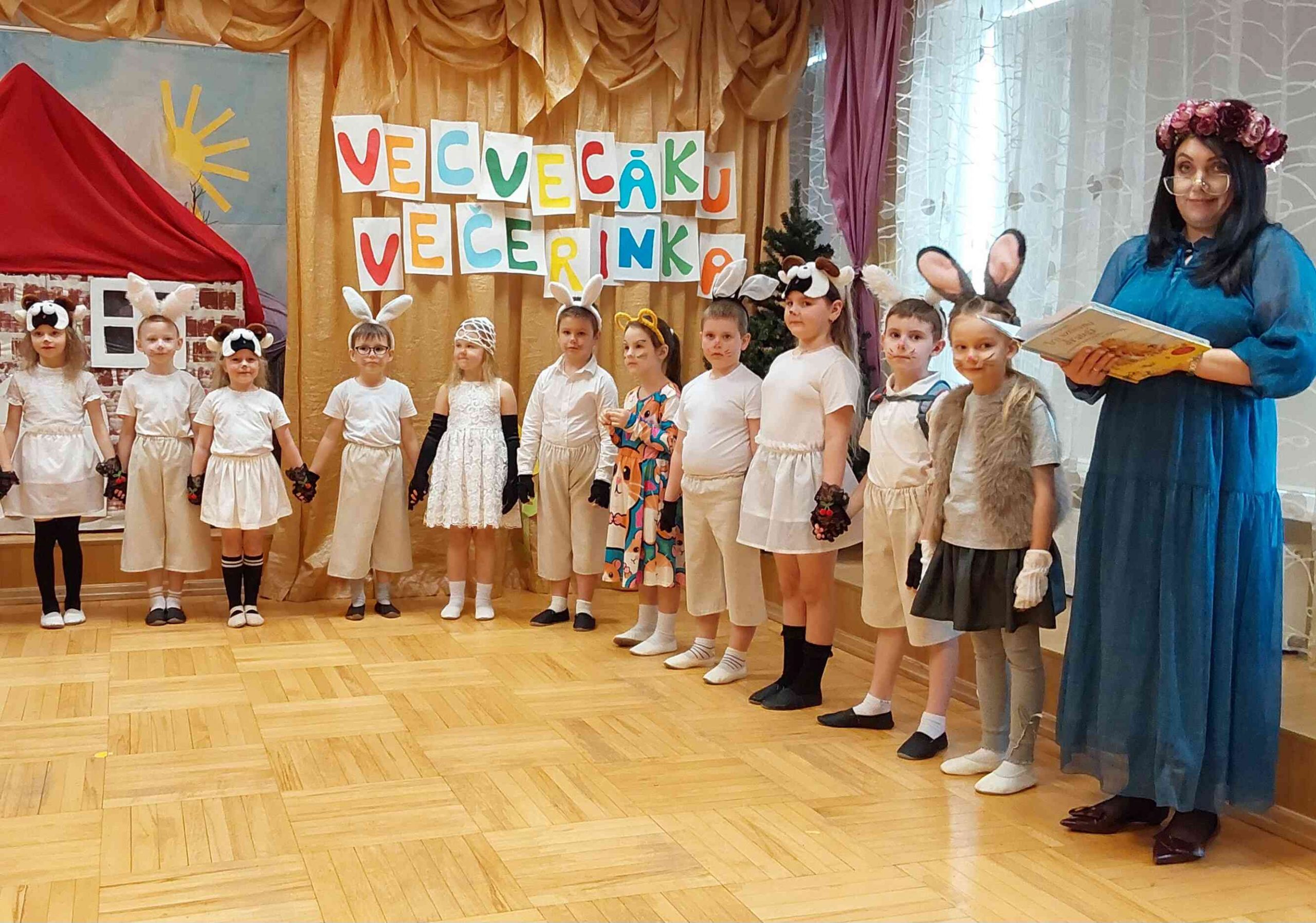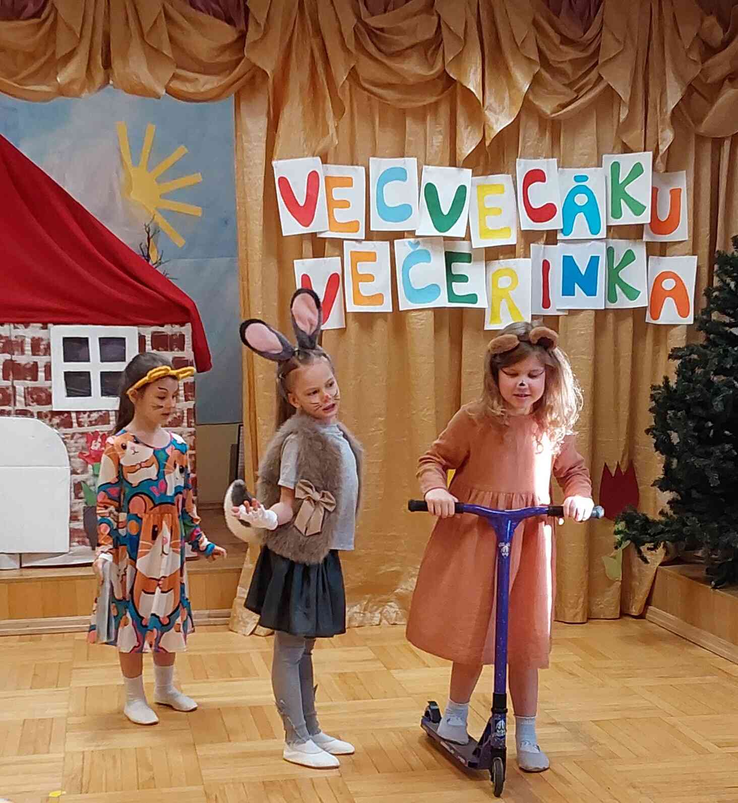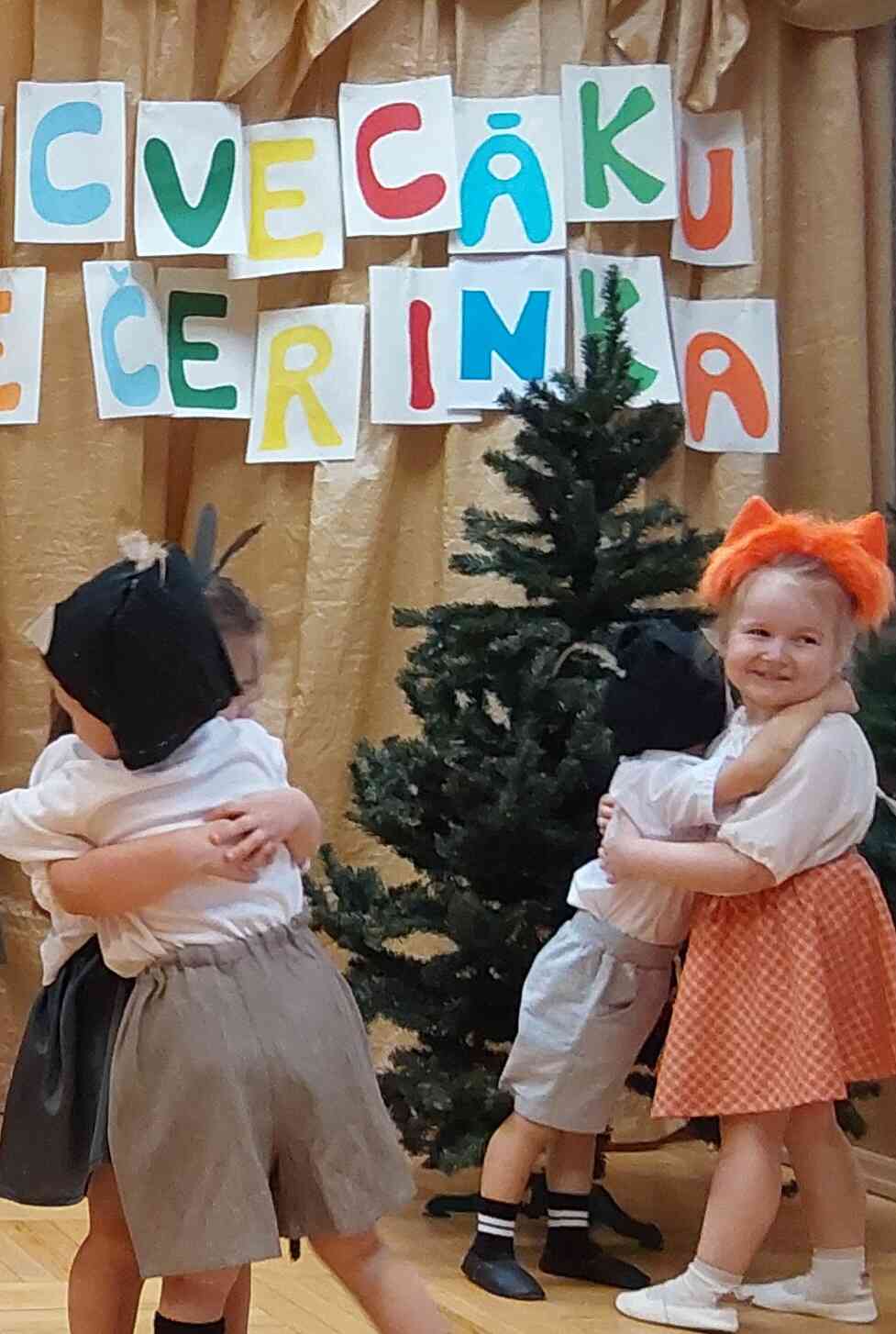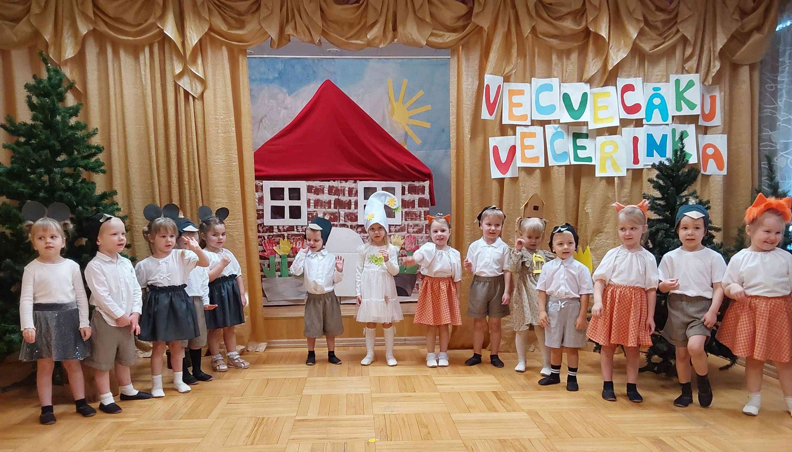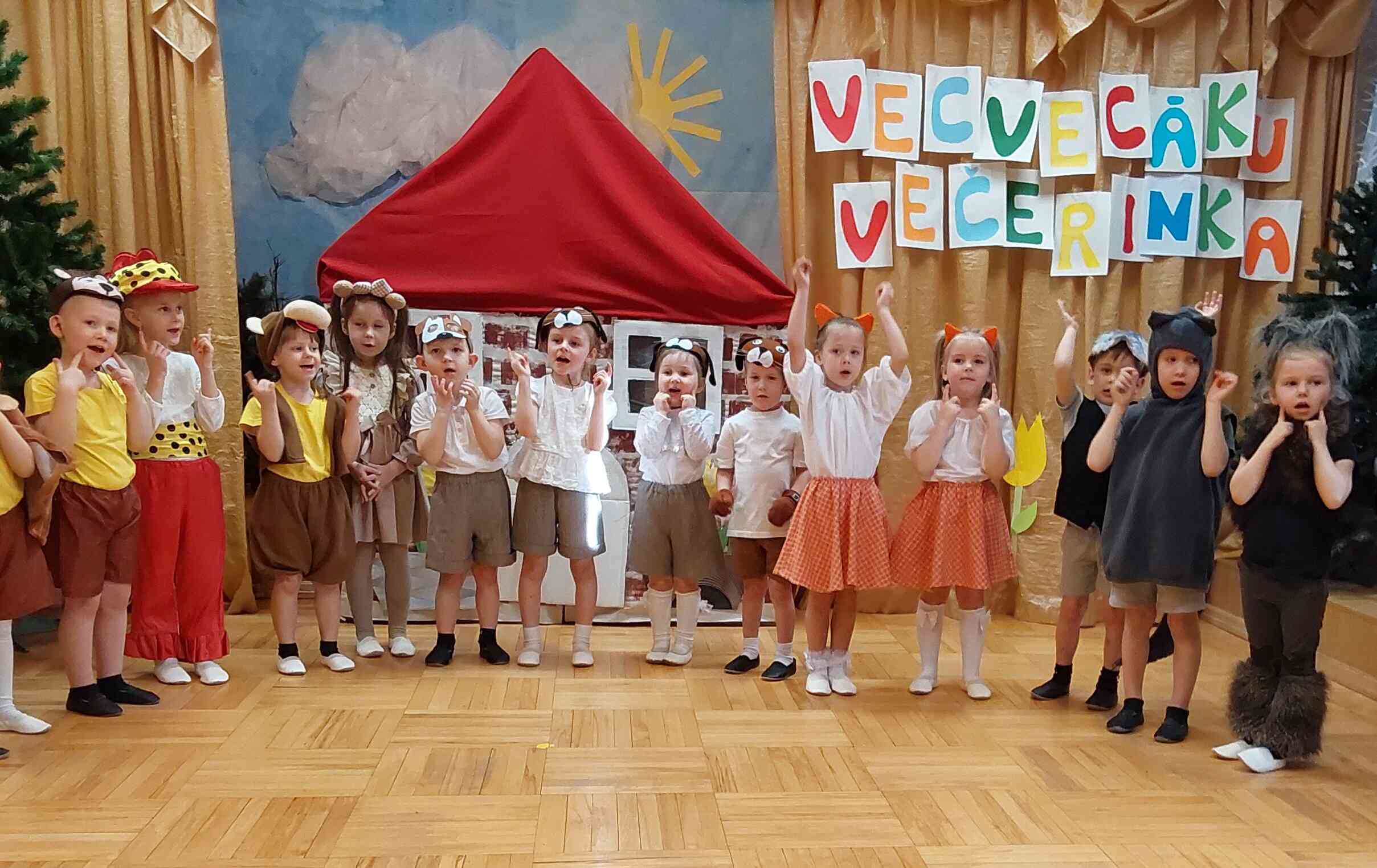 Bērni no grupas “Cālēni” sagatavoja teatrālu uzvedumu pēc pasakas “Lapsa un zaķis” motīviem.