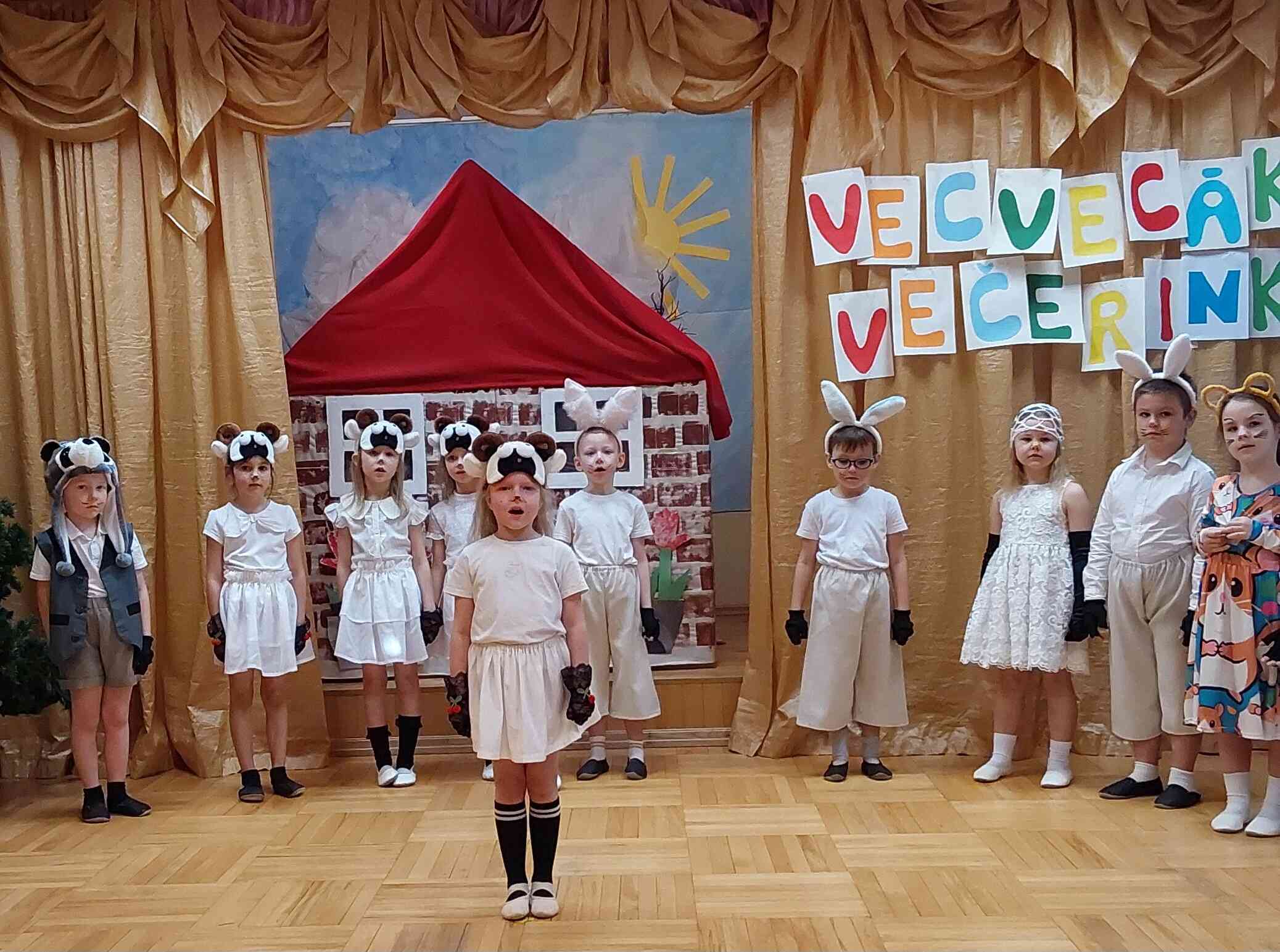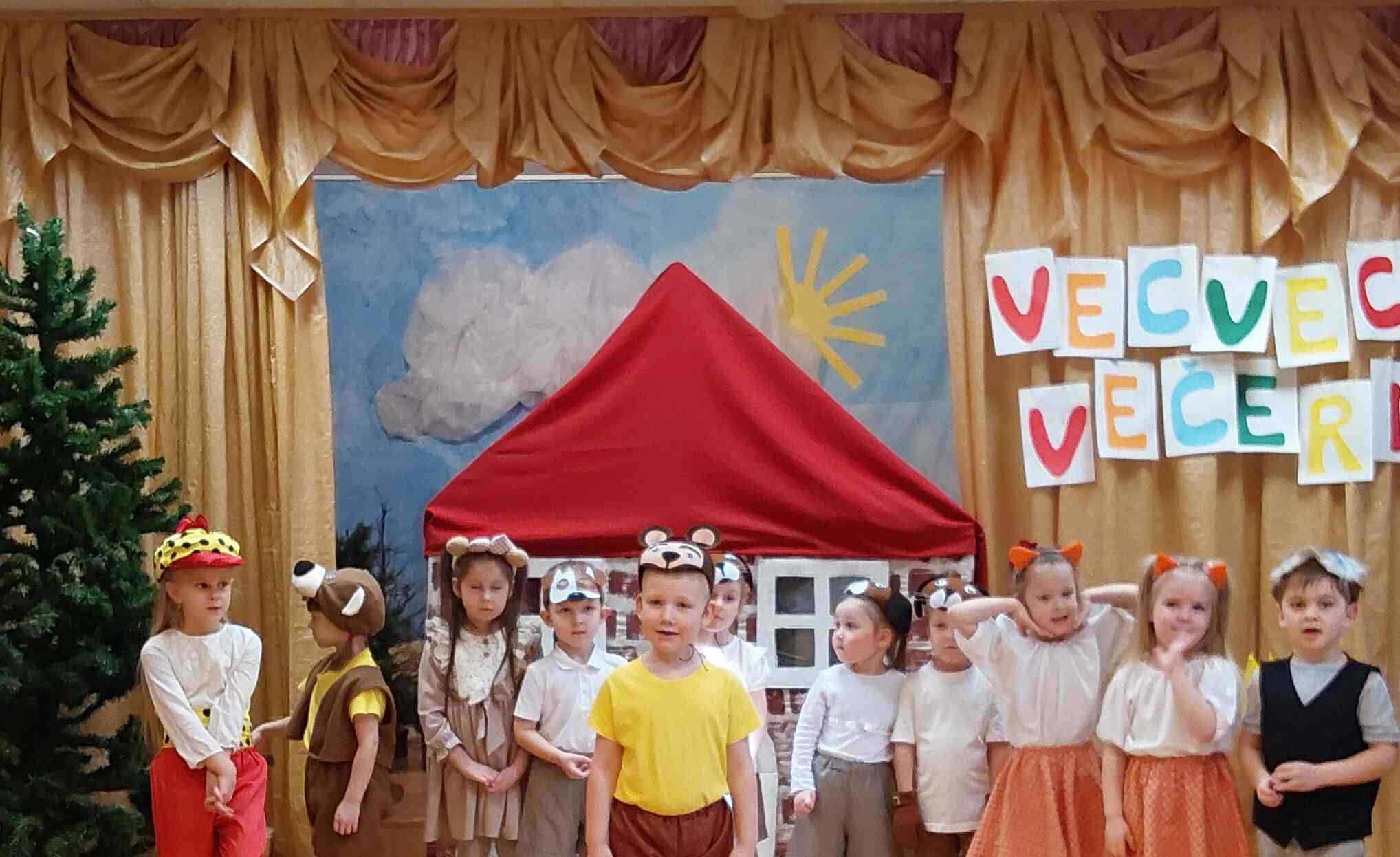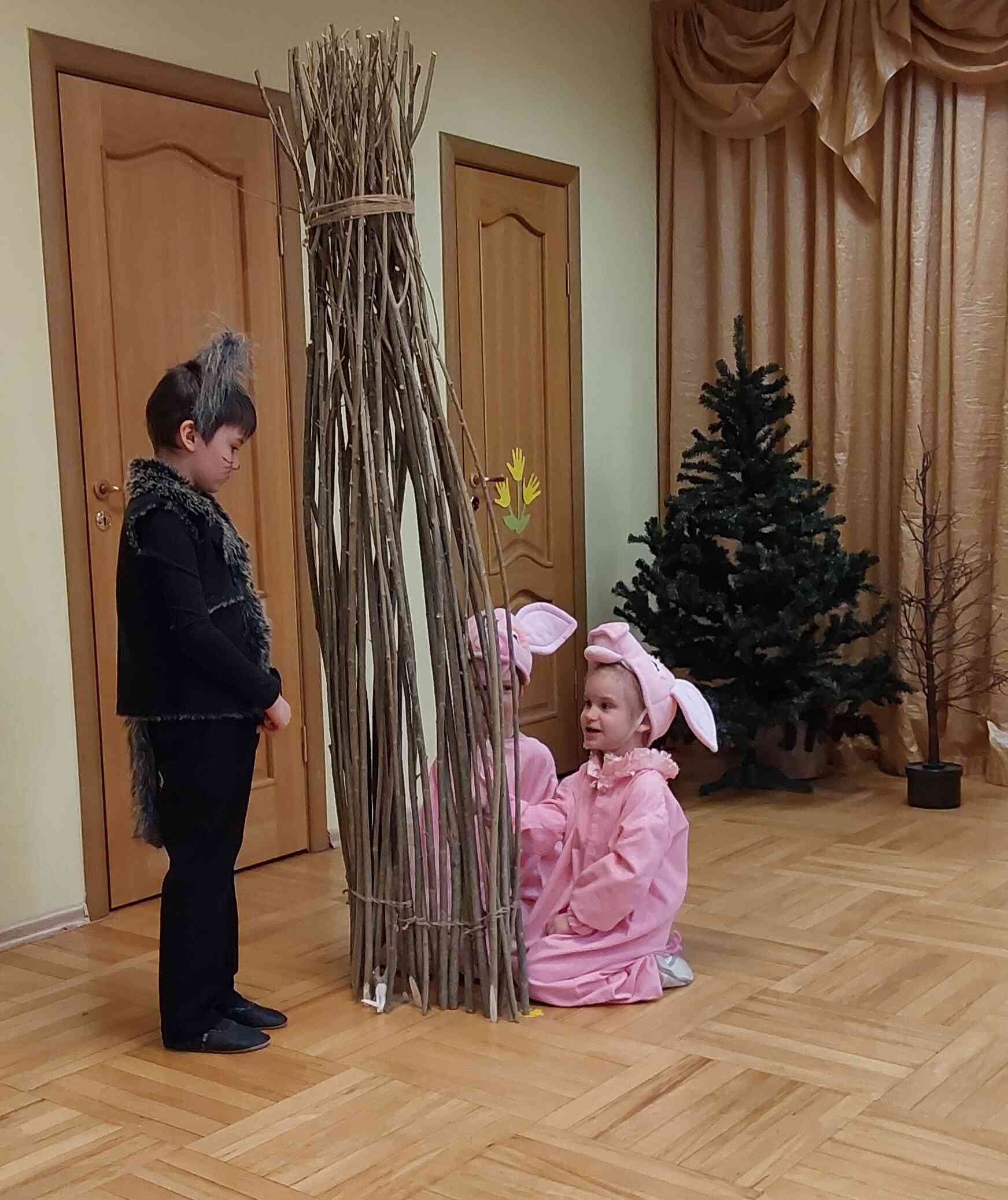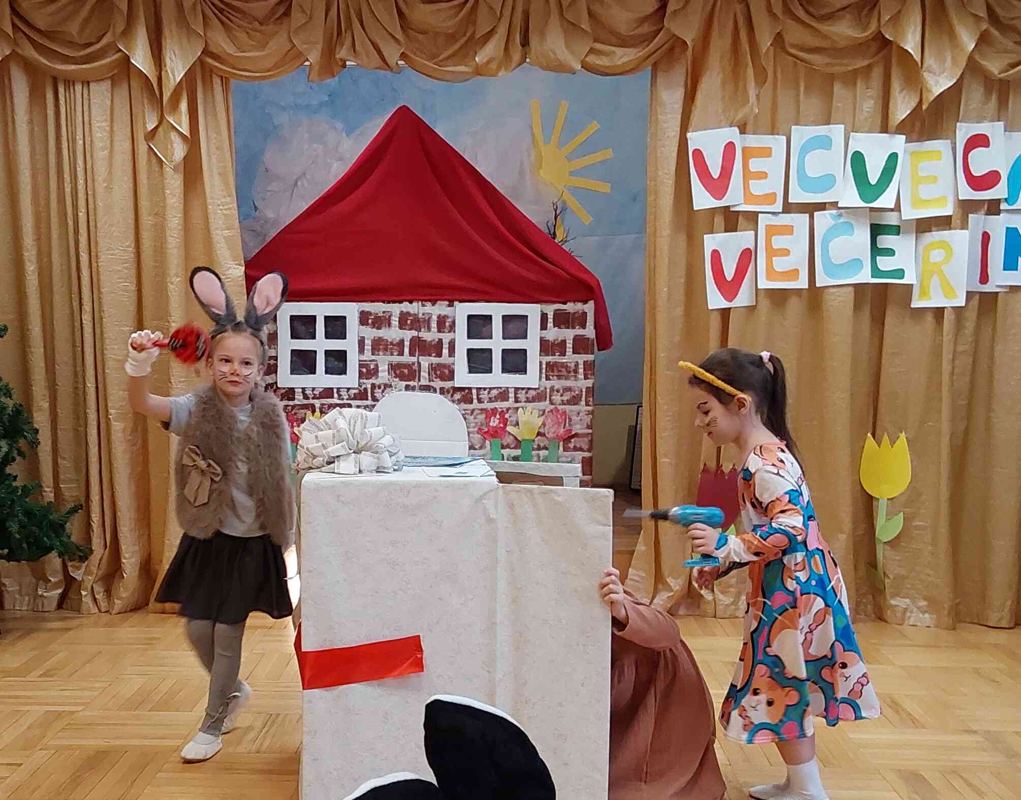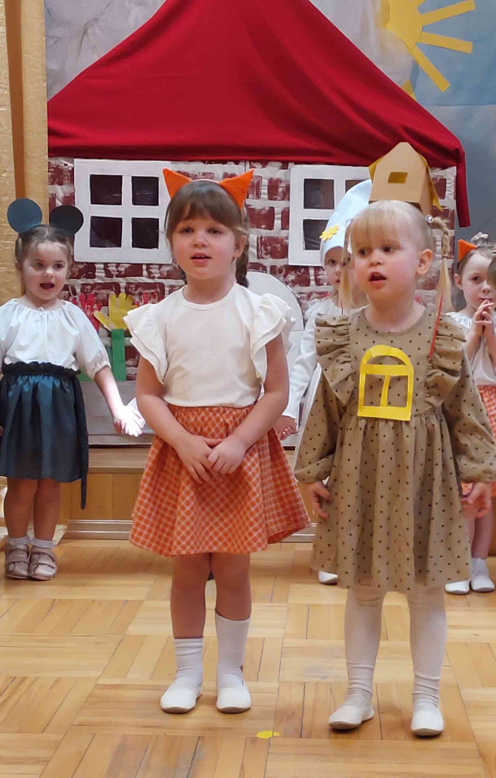 Bērni no grupas “Cālēni” sagatavoja teatrālu uzvedumu pēc pasakas “Lapsa un zaķis” motīviem.