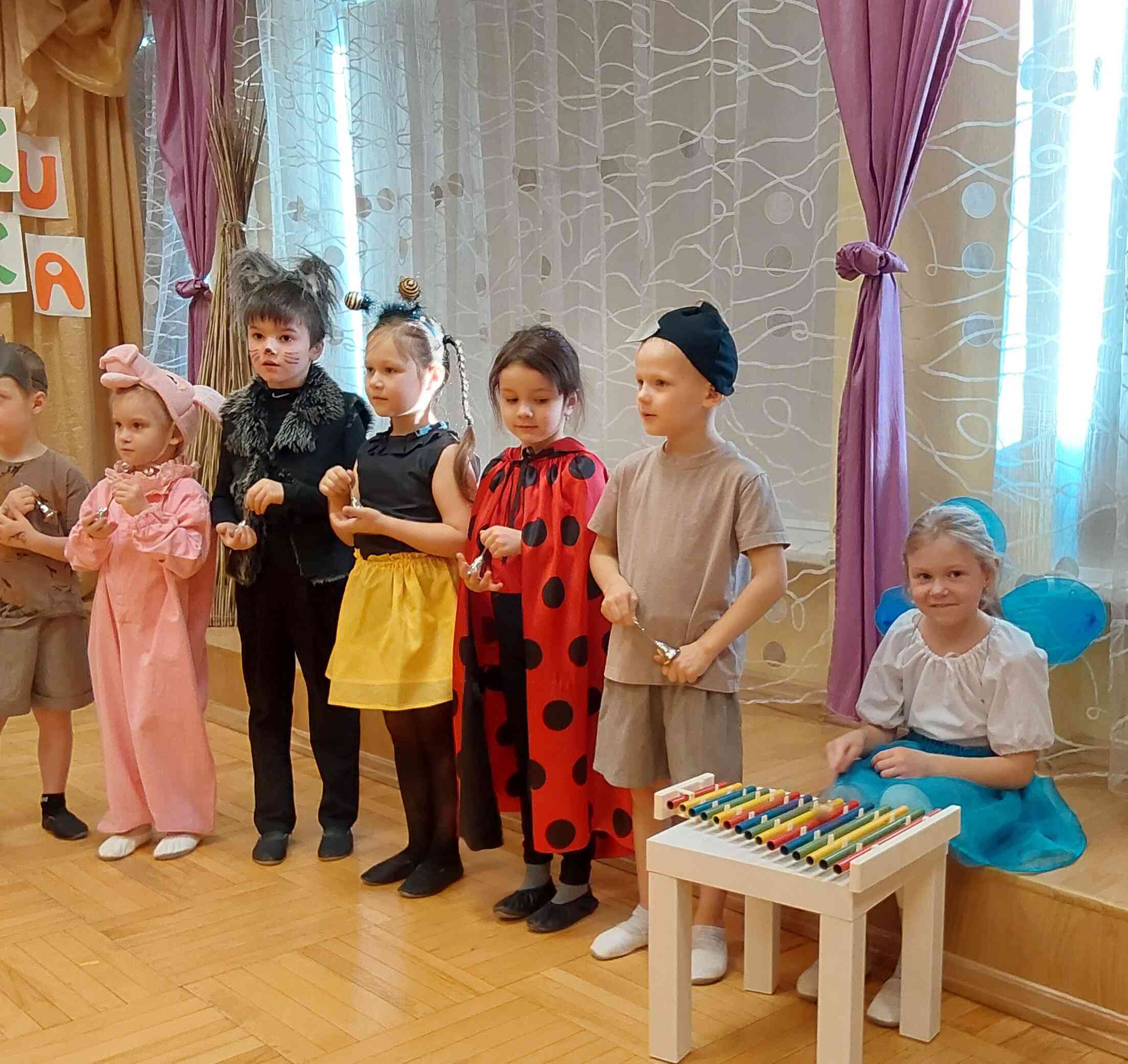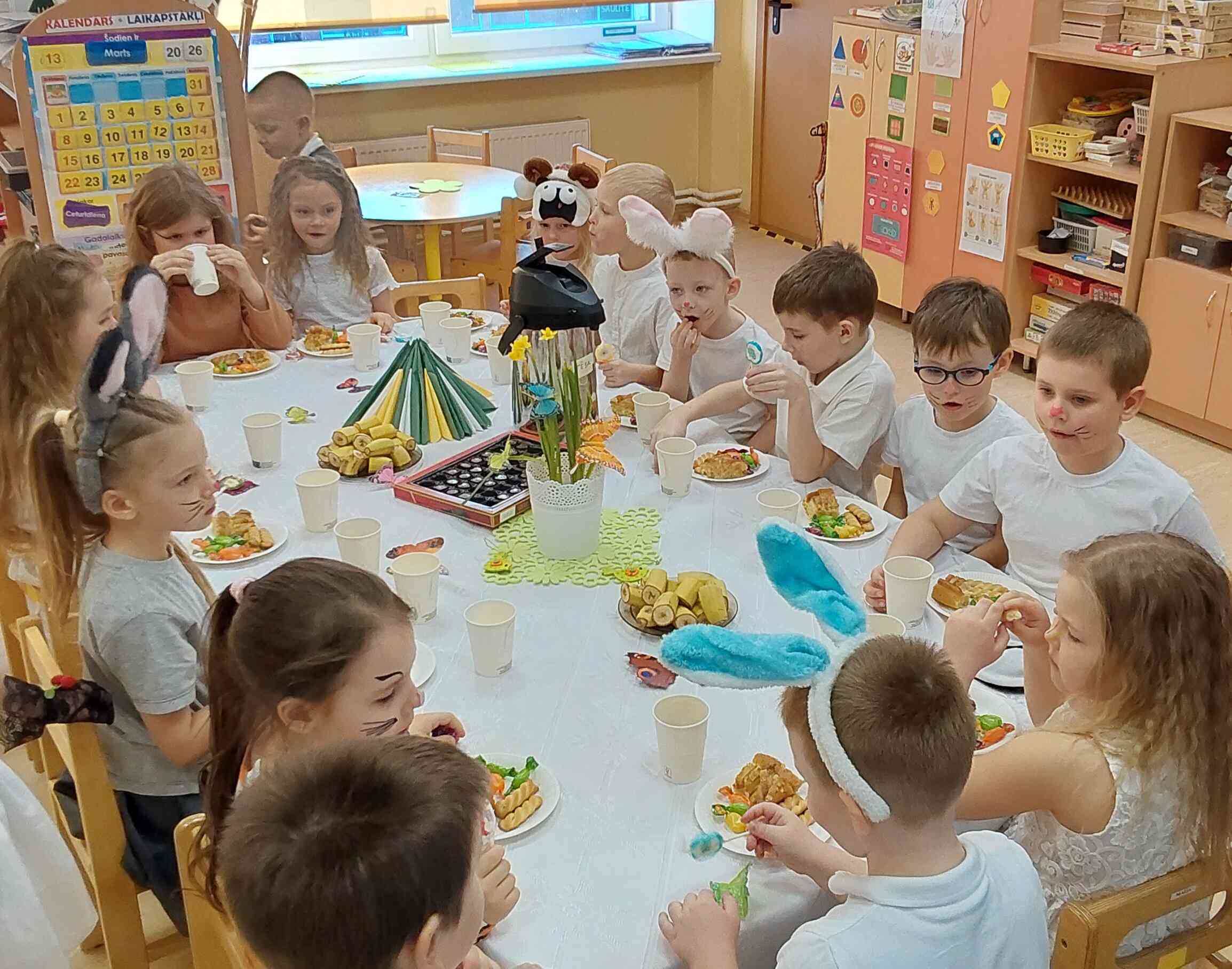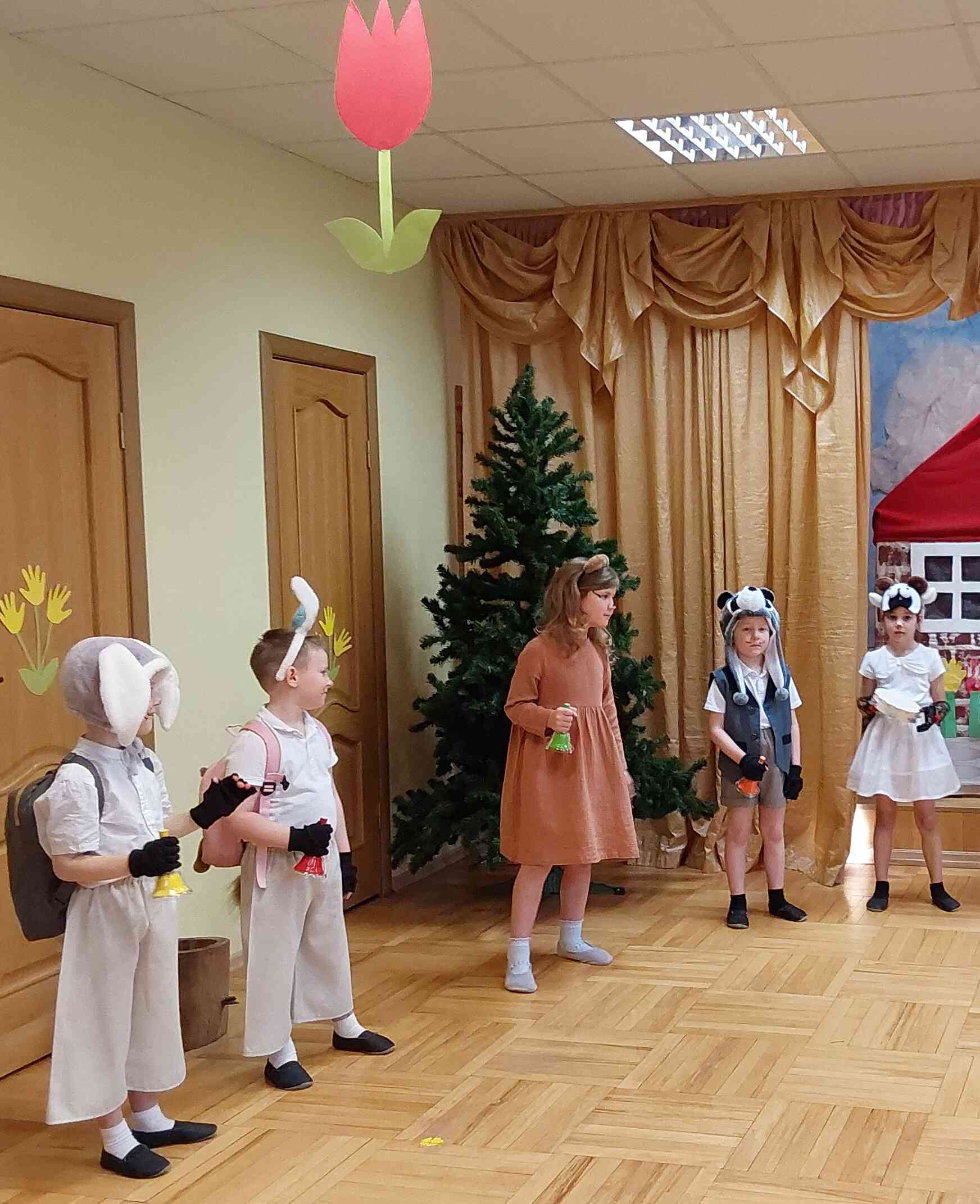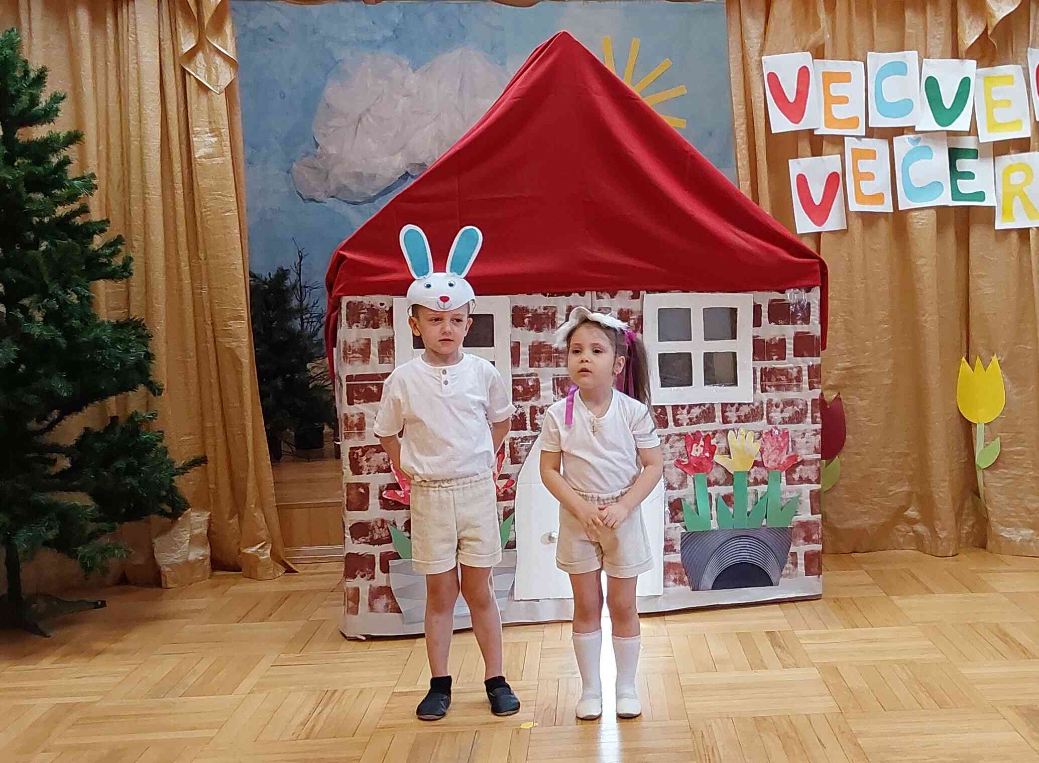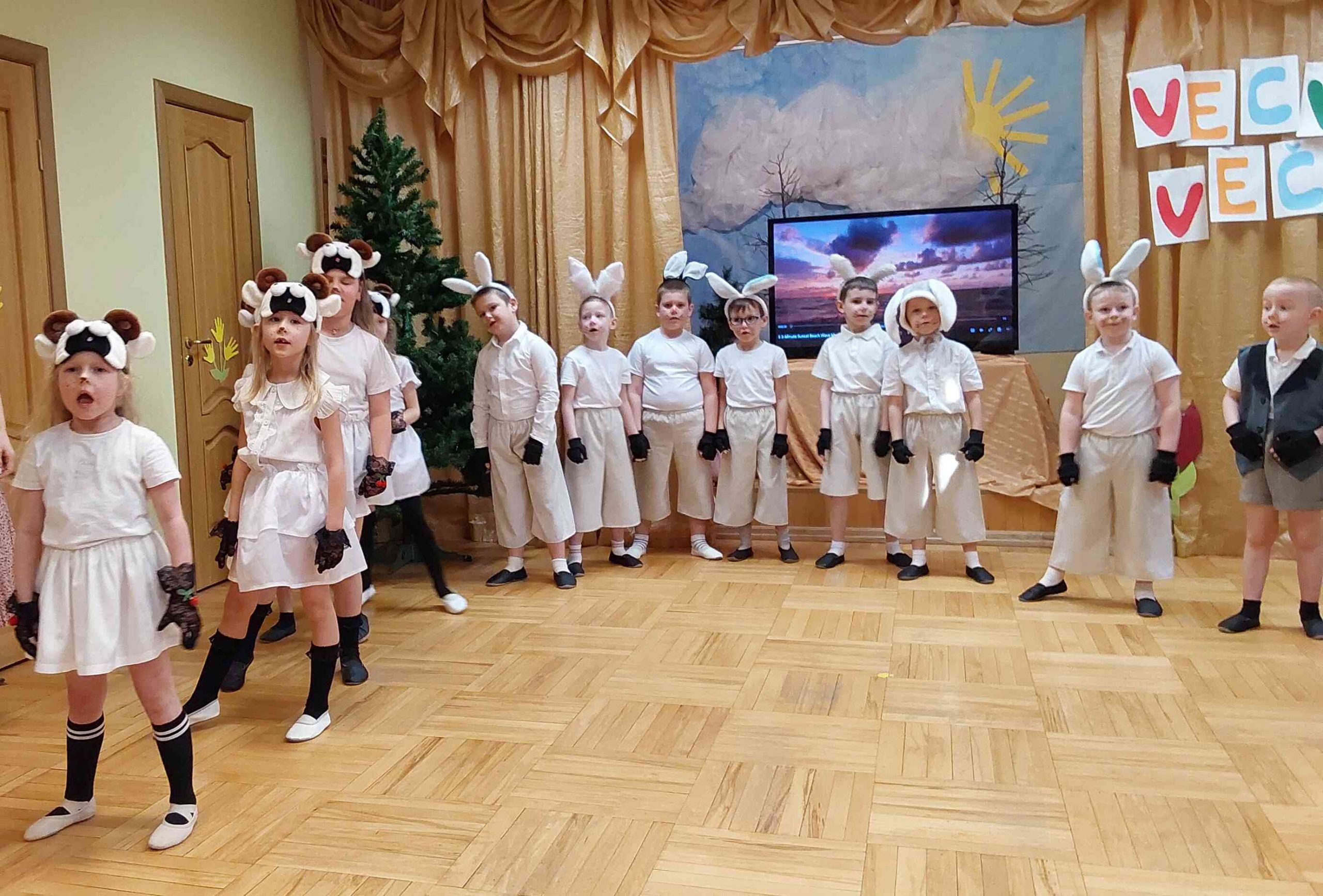 Bērni no grupas “Cālēni” sagatavoja teatrālu uzvedumu pēc pasakas “Lapsa un zaķis” motīviem.