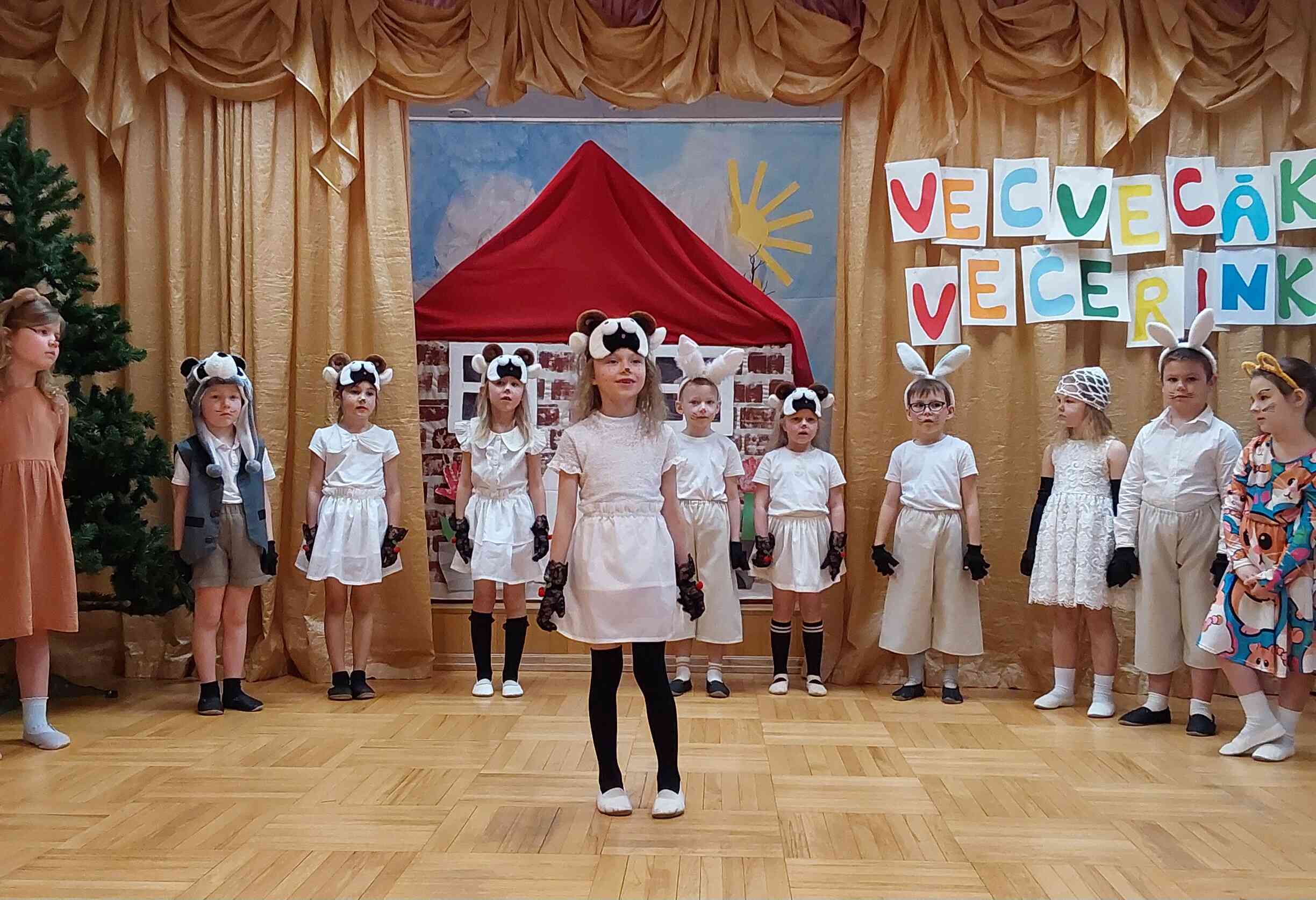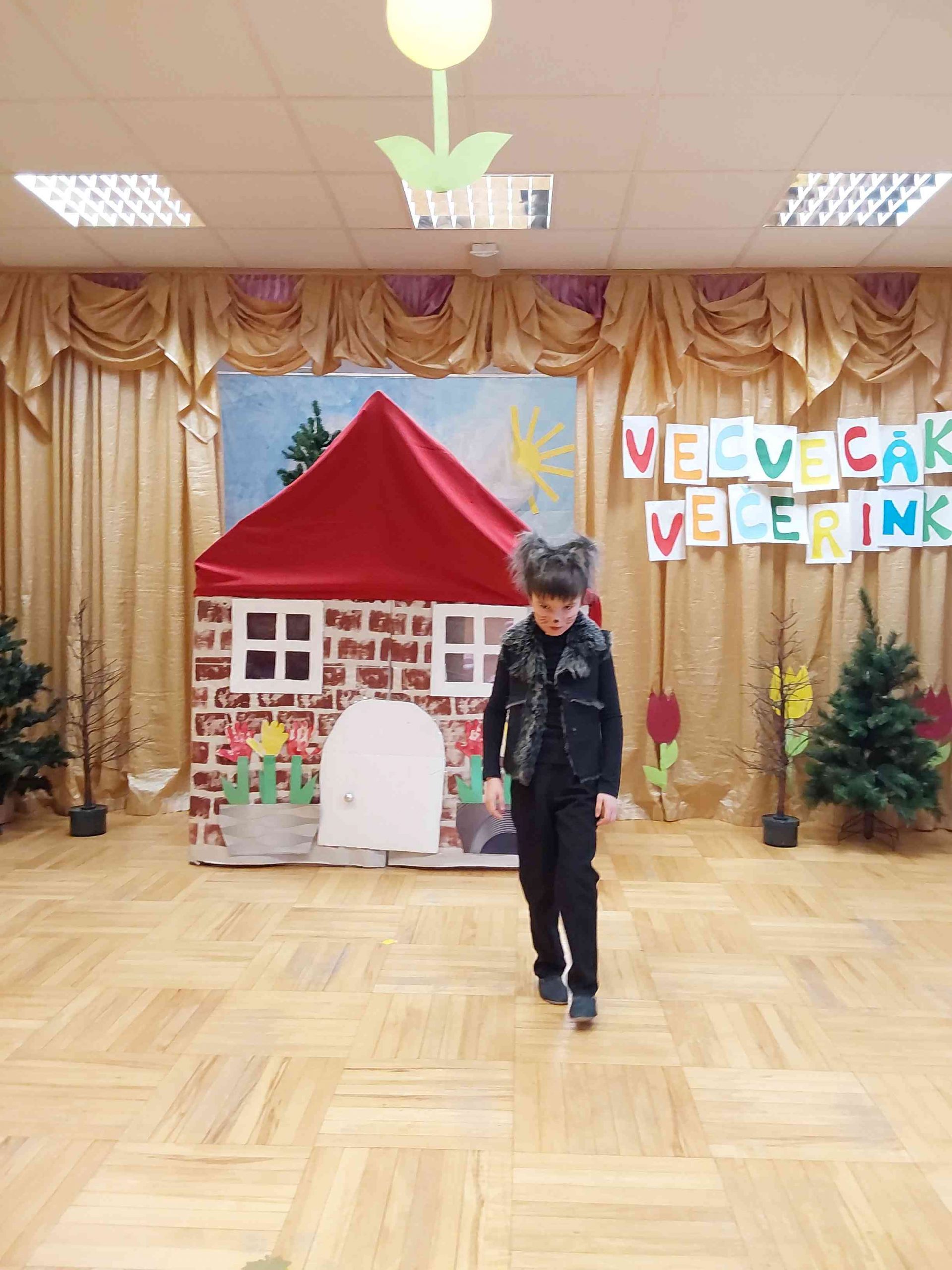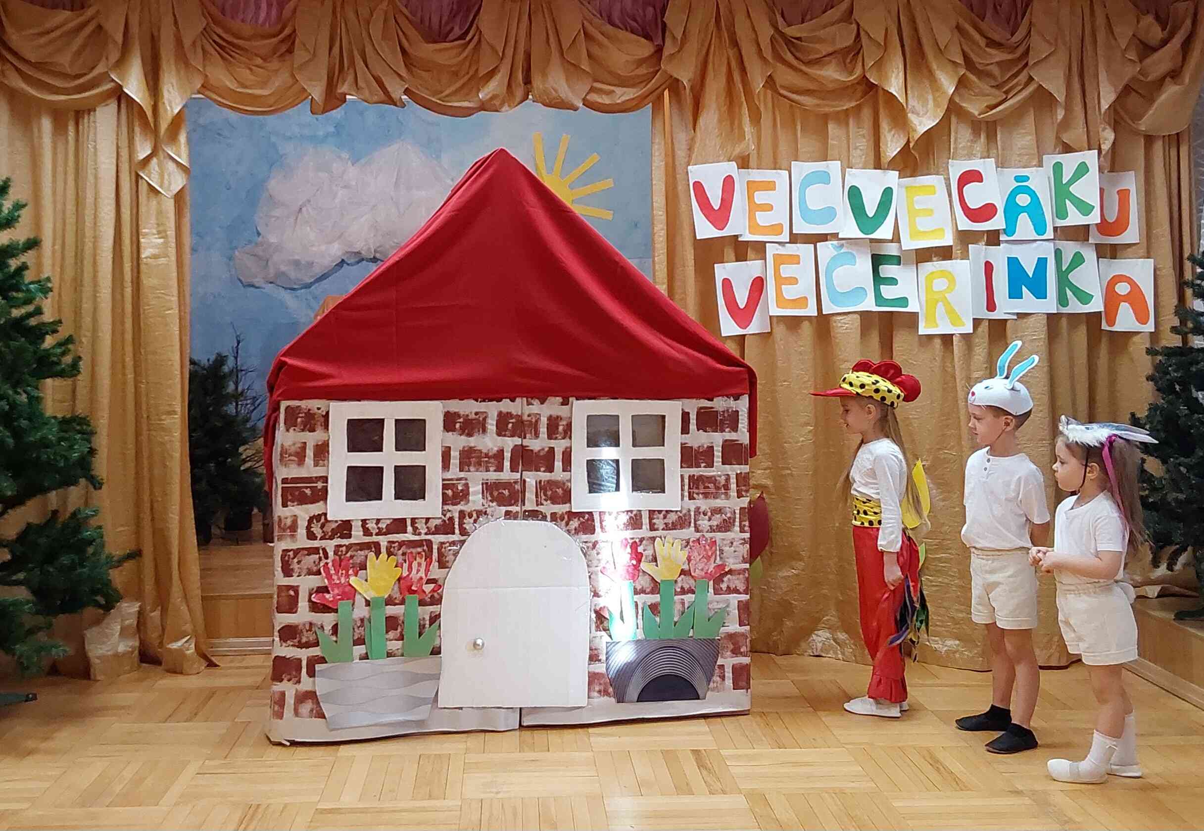 Grupas “Saulīte” izglītojamie savus vecvecākus iepriecināja rādot teātra izrādi pēc pasakas “Rūķis un māja” motīviem.