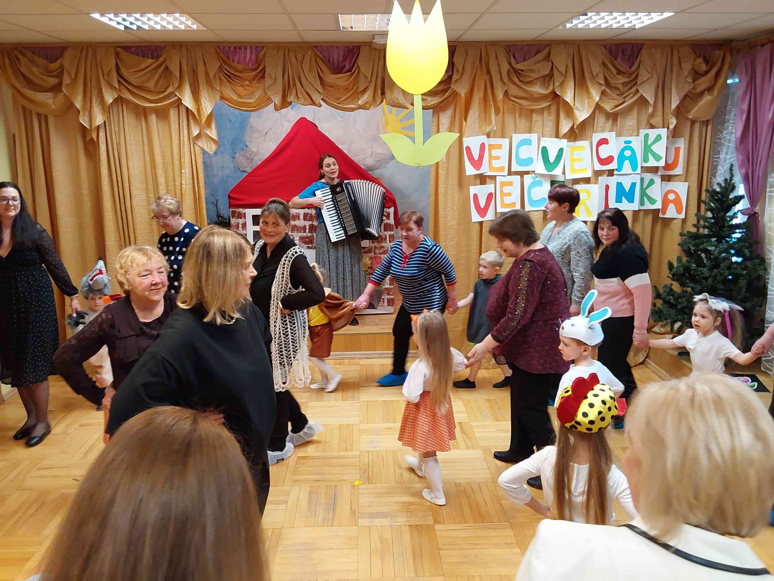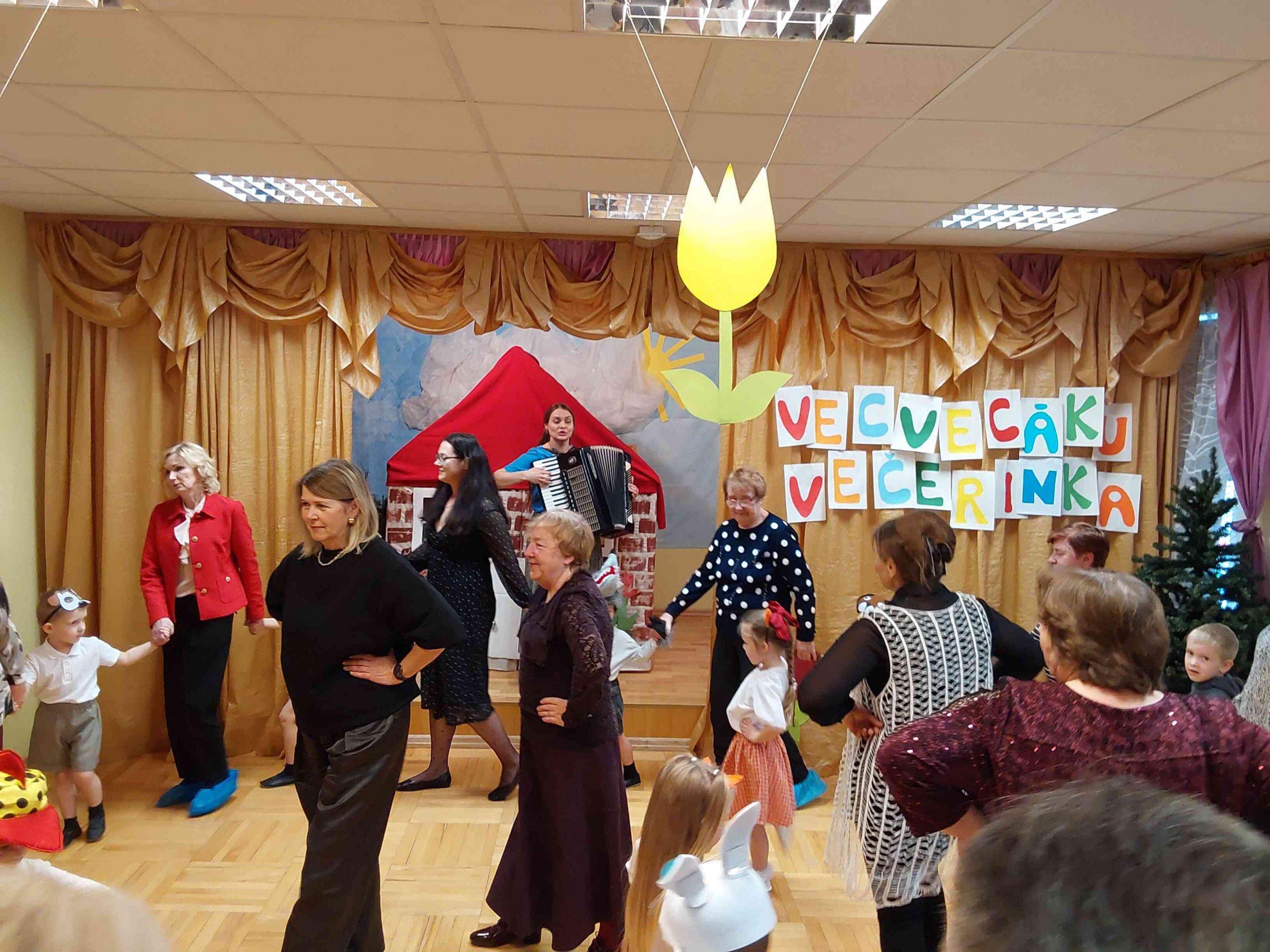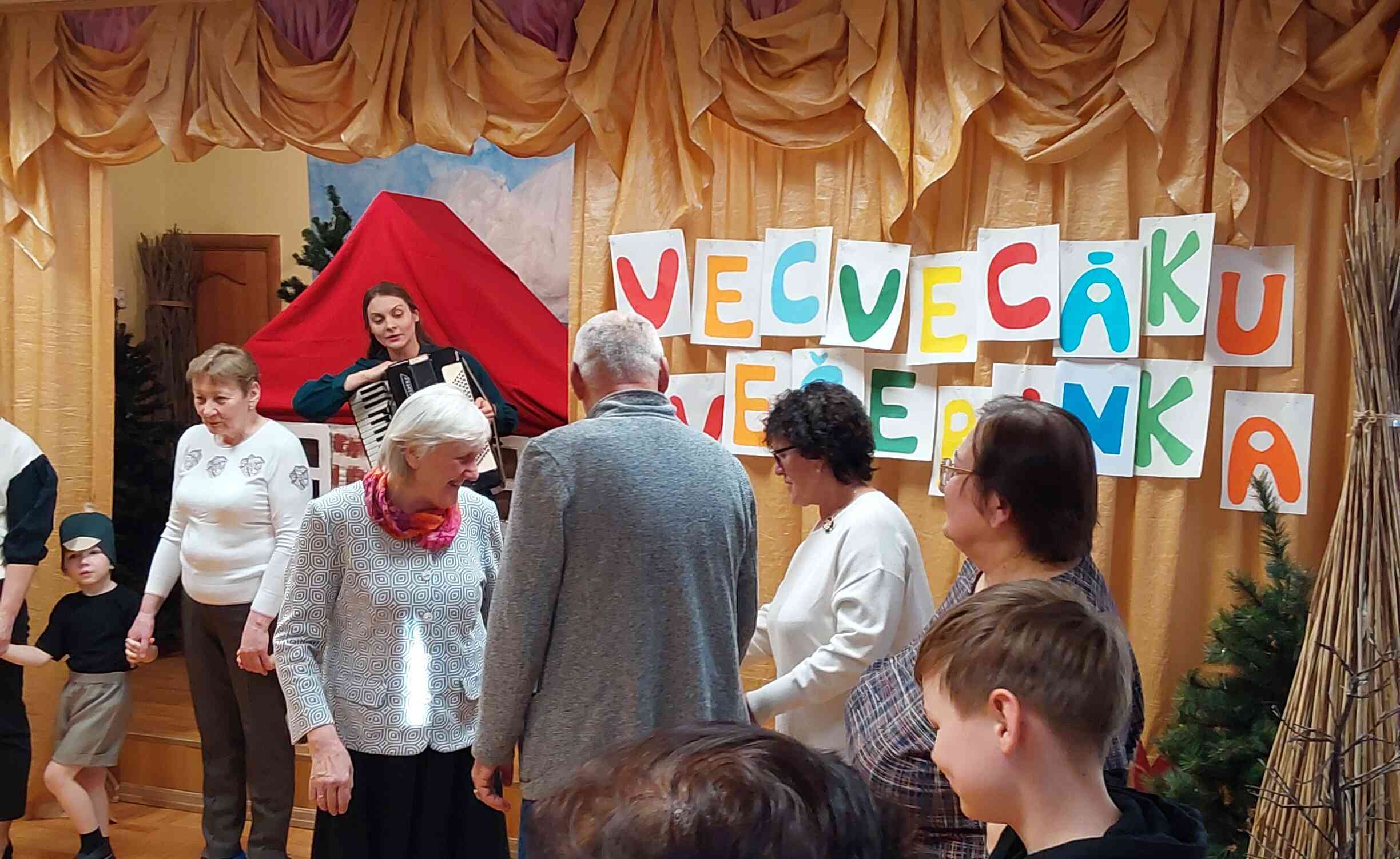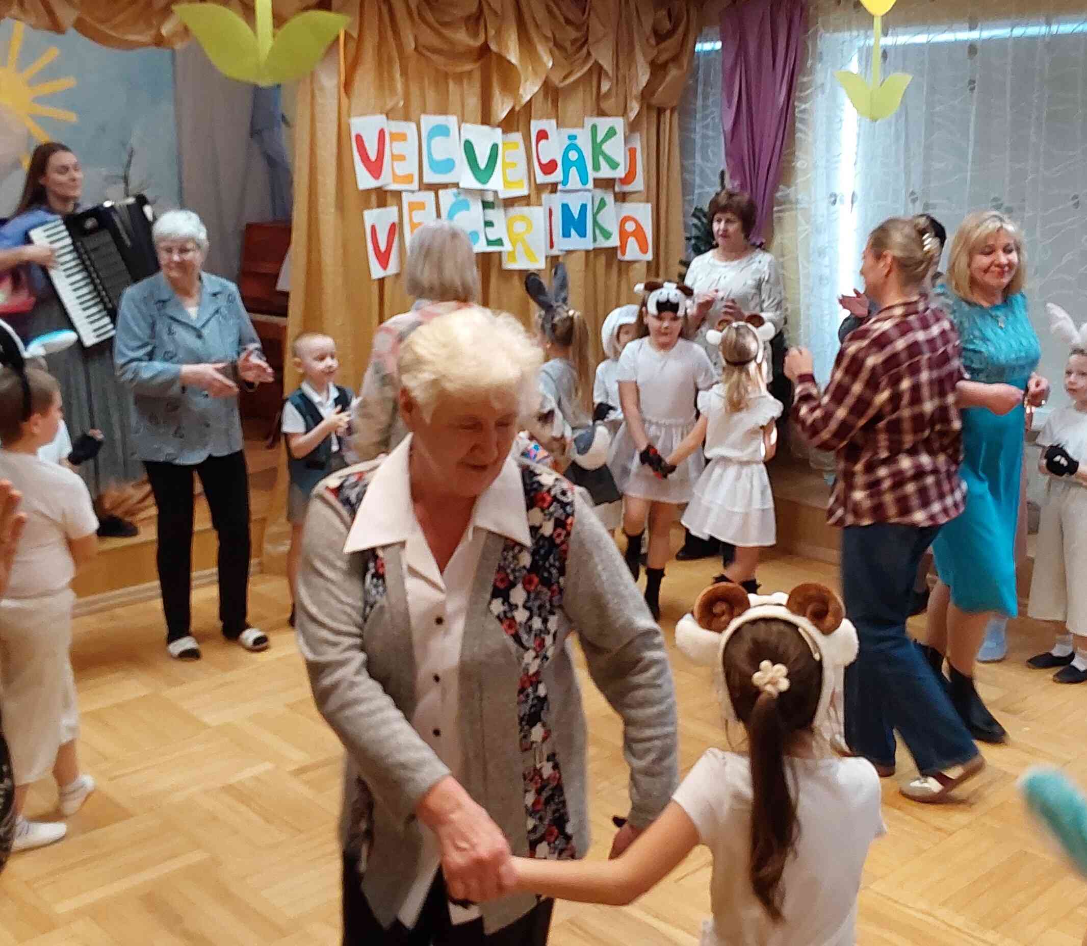 Katras “Vecvecāku večerinkas” īpašais brīdis bija, kad bērni aicināja savus vecvecākus kopā dejot un iet rotaļās akordeona pavadījumā. Bija dzirdami smiekli, visi baudīja kopā būšanas mirkļus.