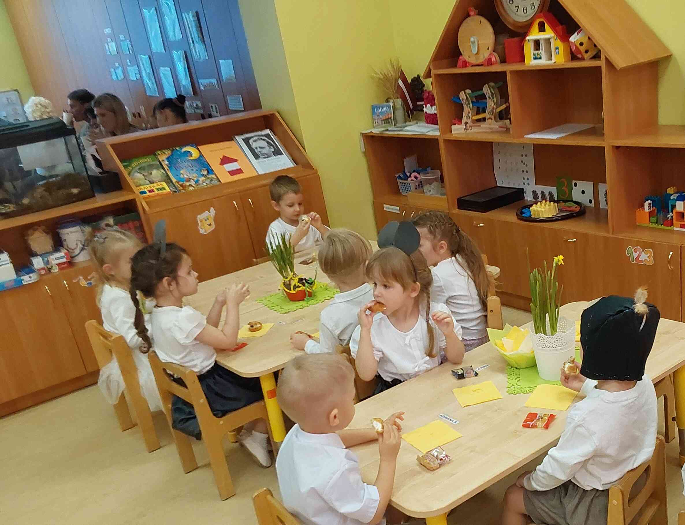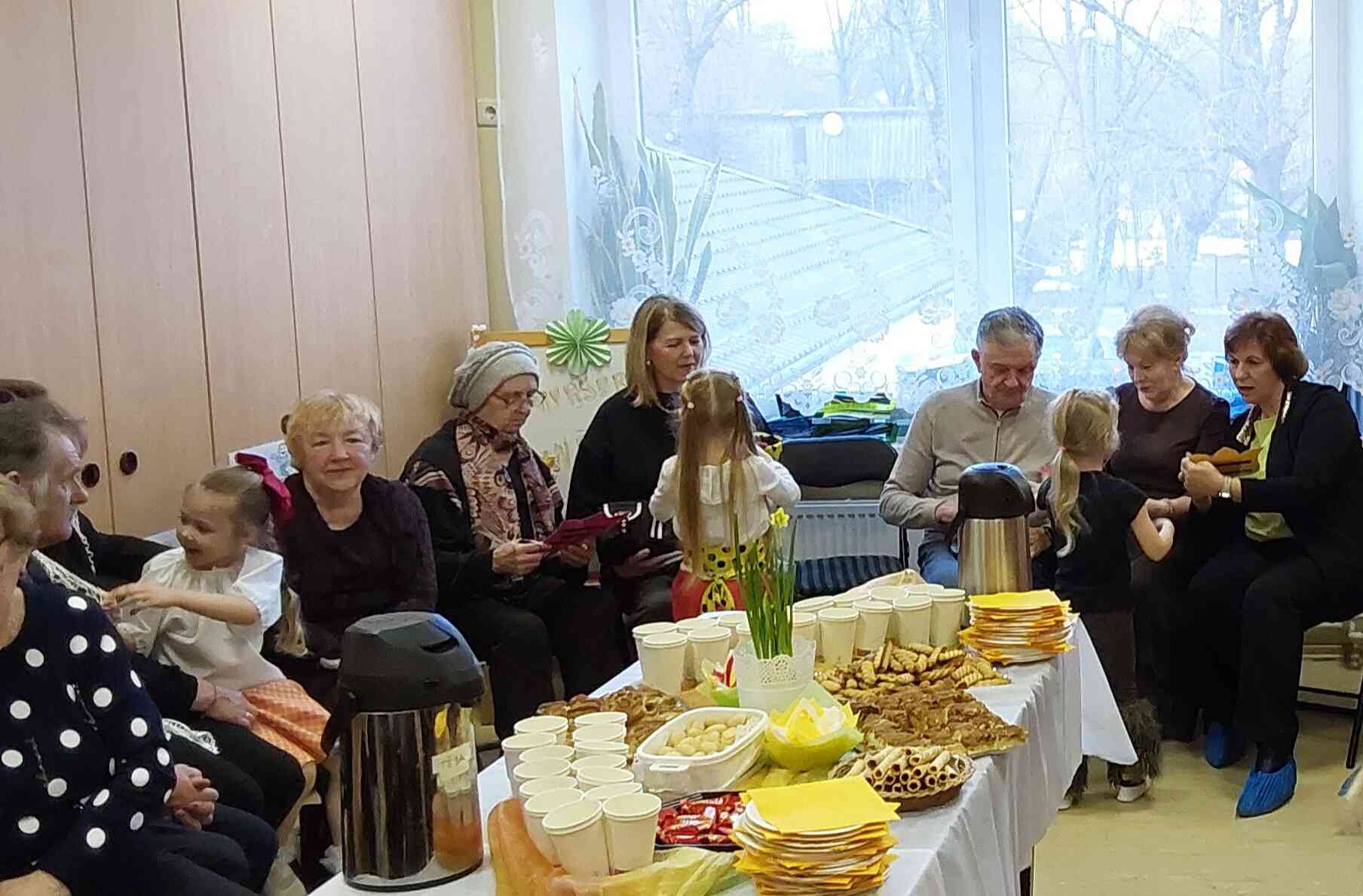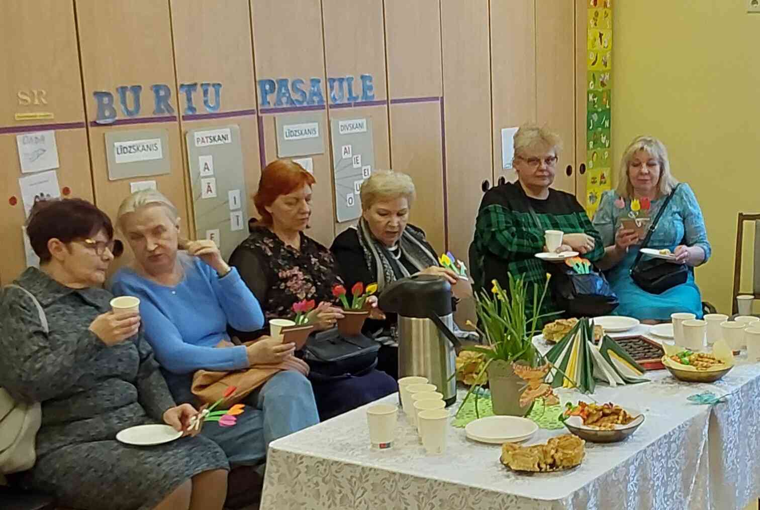 Pēc svētku koncerta vecvecāki tika aicināti uz mazbērnu grupiņām, kur viņi saņēma bērnu sagatavotas dāvaniņas un jautri pavadīja laiku pie svētku galda ar siltu tēju, mājīgi smaržojošu ābolu pīrāgu, gardiem cepumiem un konfektēm. Pie galda raisījās sirsnīgas sarunas, vecvecāki dalījās ar iespaidiem pēc pasākuma un izteica pateicības vārdus pedagogiem!
