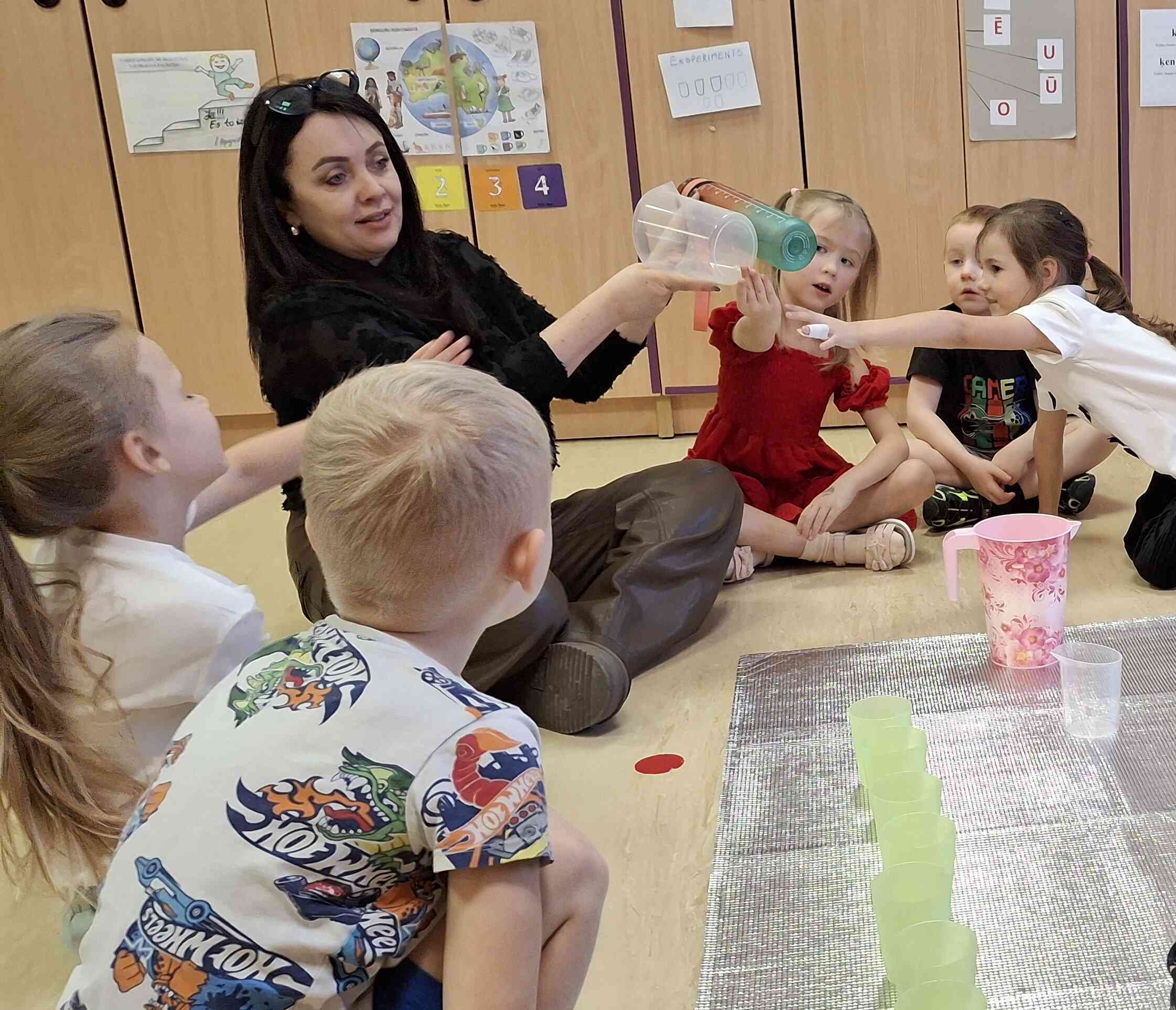 Lai veicinātu dzeramā ūdens lietošanu, svarīgi ir nodrošināt brīvi pieejamu dzeramo ūdeni. Mūsu grupā padzerties var jebkurā brīdī, bet cik ūdens ir ieteicams izdzert dienā? Atbildot šo jautājumu, 23.janvārī veicām eksperimentu “Cik ūdens man dienā jāizdzer? Izpētījām mediķu, veselības speciālistu ieteikumus, veicām mērījumus un tas ir nepilnas 7 glāzes dienā, bet pieaugušajiem- 1,5 litri dienā.
