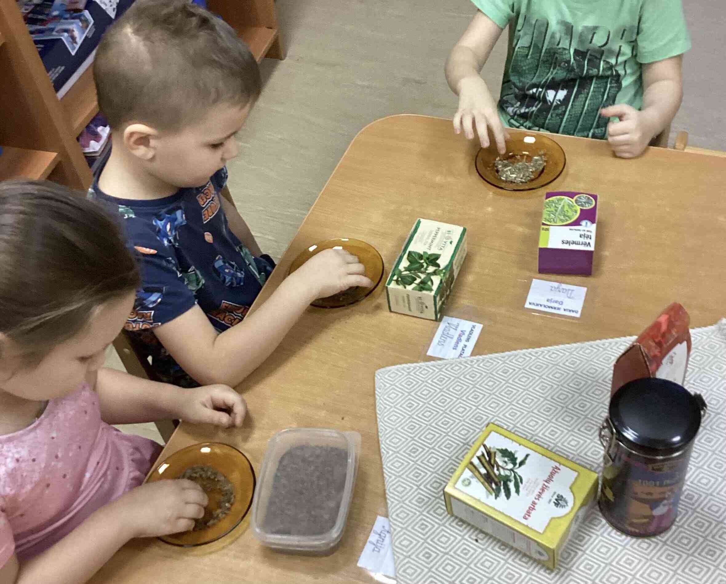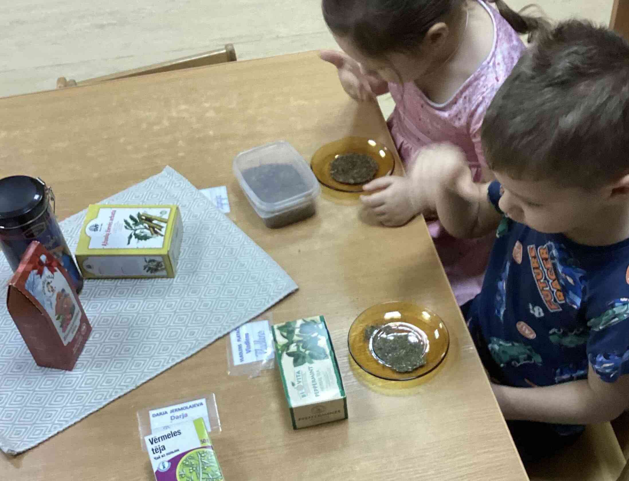 17.01.26. notika Zāļu tēju pētīšana. Ar bērniem noskaidrojām, kuras tējas viņiem garšo vislabāk un kapēc. Tās ir kumelīšu tēja un augļu tēja, jo tai ir patīkama smarža. Katram bija iespēja apskatīt, pasmaržot zāļu tējas, piemēram, kumelīšu tēju, piparmētru tēju, vērmeļu tēju u.c. Apskatīja augu attēlus, kā izskatās kumelītes, piparmētras, vērmeles. Uzzināja ka augi aug pļavās, dārzos un kā tos vāc, kaltē un pagatavo tēju. Noskaidrojām, cik vērtīgas ir zāļu tējas, kā tās pareizi pagatavot. Dažas tējas palīdz justies labāk, sasildīties, atveseļoties vai nomierināties. Vēroja, kā tēja mainās, kad tā ilgak pastāv siltā ūdenī (krāsa, smarža). Mācoties par zāļu tējām, bērni uzzina, kā daba mums palīdz būt veseliem.