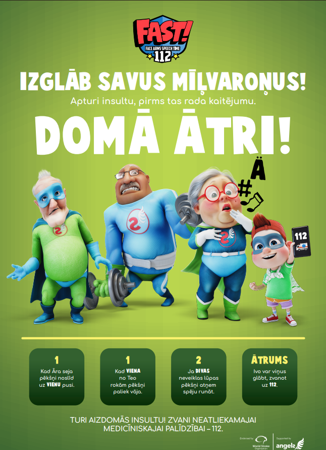 Katrs trešais seniors saskaras ar insultu un invaliditāti, kas ierobežo spēju piedalīties gan mazbērnu, gan ģimenes dzīvē kā agrāk. Bērni nes misiju savās ģimenēs nodot dzīvības glābšanas zināšanas par insulta testu- atsmaidi, turi rokas, runā, izsauc. Zina rīcības plānu insulta gadījumā un telefona numuru 112 vai 113.