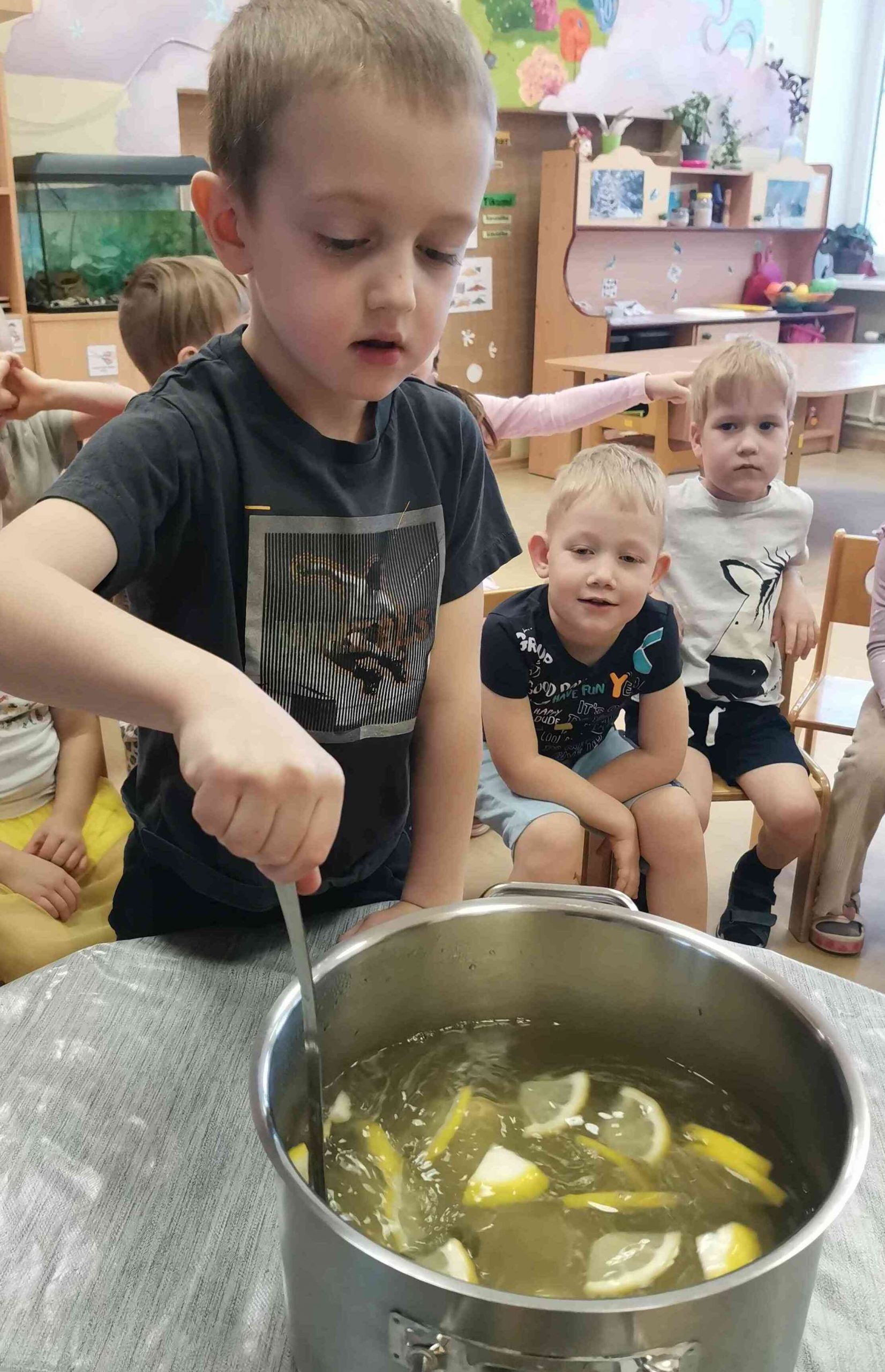 2026.g. 12. janvārī, bērni no grupas “Cālēni” gatavoja veselīgu citrona dzērienu. Bērni nosauca veselīgus produktus, kuri ir bagāti ar vitamīnu C. Kopā ar bērniem noskaidrojām, ko var pievienot klāt citrona ūdenim, aizvietojot cukuru, lai tas nav skābs. Lai dzēriens būtu gan garšīgs, gan veselīgs pievienojam klāt medu. Bērniem arī tika pastāstīts, ka medu drīkst pievienot tikai siltajam ūdenim, lai saglabātos visi vitamīni. Pagatavots citrona dzēriens audzēkņiem ļoti labi garšoja.
