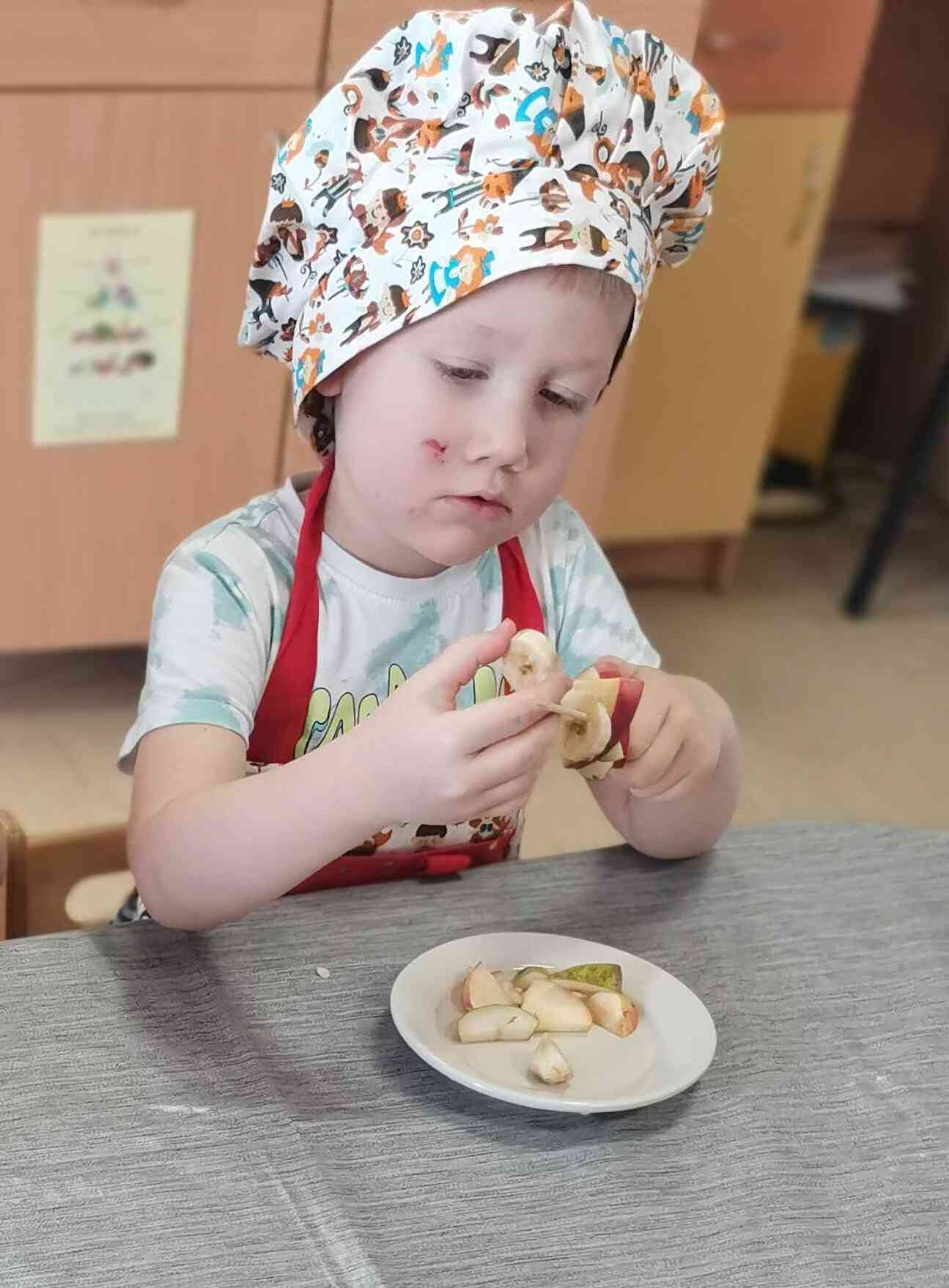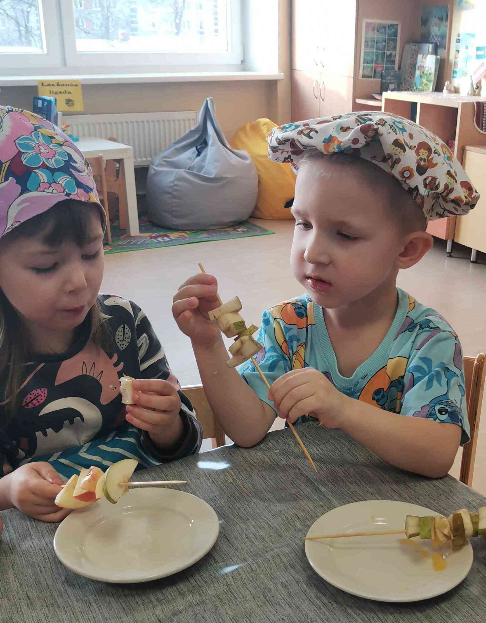 2026.g.19. janvārī, radošo rokdarbu nodarbību ietvaros “Es to varu” bērni no grupas “Cālēni” gatavoja veselīgas augļu uzkodas. Bērni stāstīja par augļu nozīmīgumu cilvēka veselībai, kā arī katrs nosauca augli, kurš viņam garšo. Pirms augļu uzkodu gatavošanas, ar audzēkņiem tika pārrunāts par higiēnas noteikumu ievērošanu un par drošības noteikumu ievērošanu darbojoties ar iesmu. Bērni uzmanīgi un ar aizrautību sprauda augļus uz iesma. Augļi likās gardāki ēdot tos no iesma.