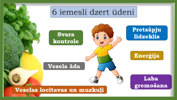 Bērni iepazinās ar 6 iemesliem, kāpēc jādzer ūdens. Secināja, ka obligāti jālieto uzturā dārzeņi un jādzer ūdens katru dienu.